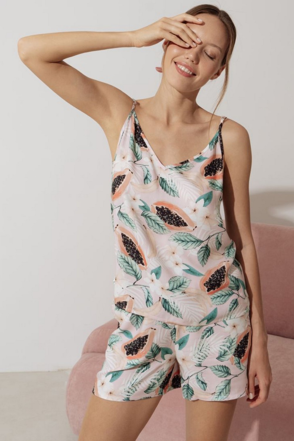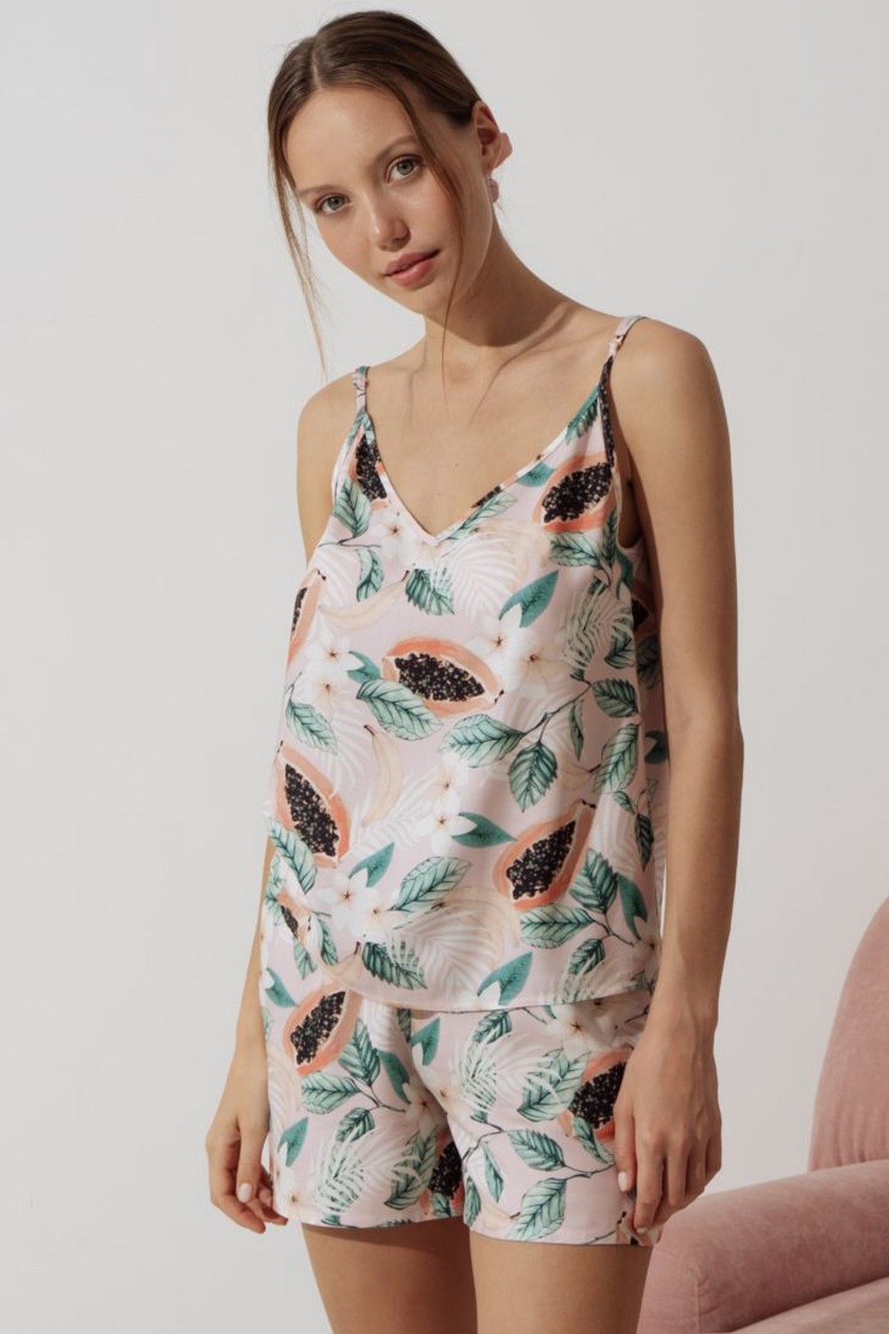 Код: 00119627 Коллекция: Papaya Артикул: 11073/45084 Состав полный: Вис 100% Название: Пижама жен,11073/45084,1s-51(светло-розовый,роз,,папайя), (42-170) Размер: 42 Рост: 170
