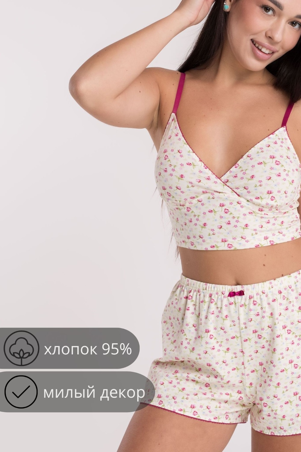 Код: 00124477 Коллекция: Батистовый напев Артикул: s5551,s5514 Состав полный: Хл 95%, Эл 5% Название: Пижама жен,s5551,s5514,s5514/5(молочный с рис. 7483,молоч,,батистовый напев 7483/v06), (42-170) Размер: 42 Рост: 170