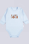 Код: 00116719 Коллекция: - Артикул: 1001а-20 Состав полный: Хл 100% Название: Боди мал,1001а-20,-(голубой/коричневый,гол,,I love dogs), (24-74) Размер: 24 Рост: 74