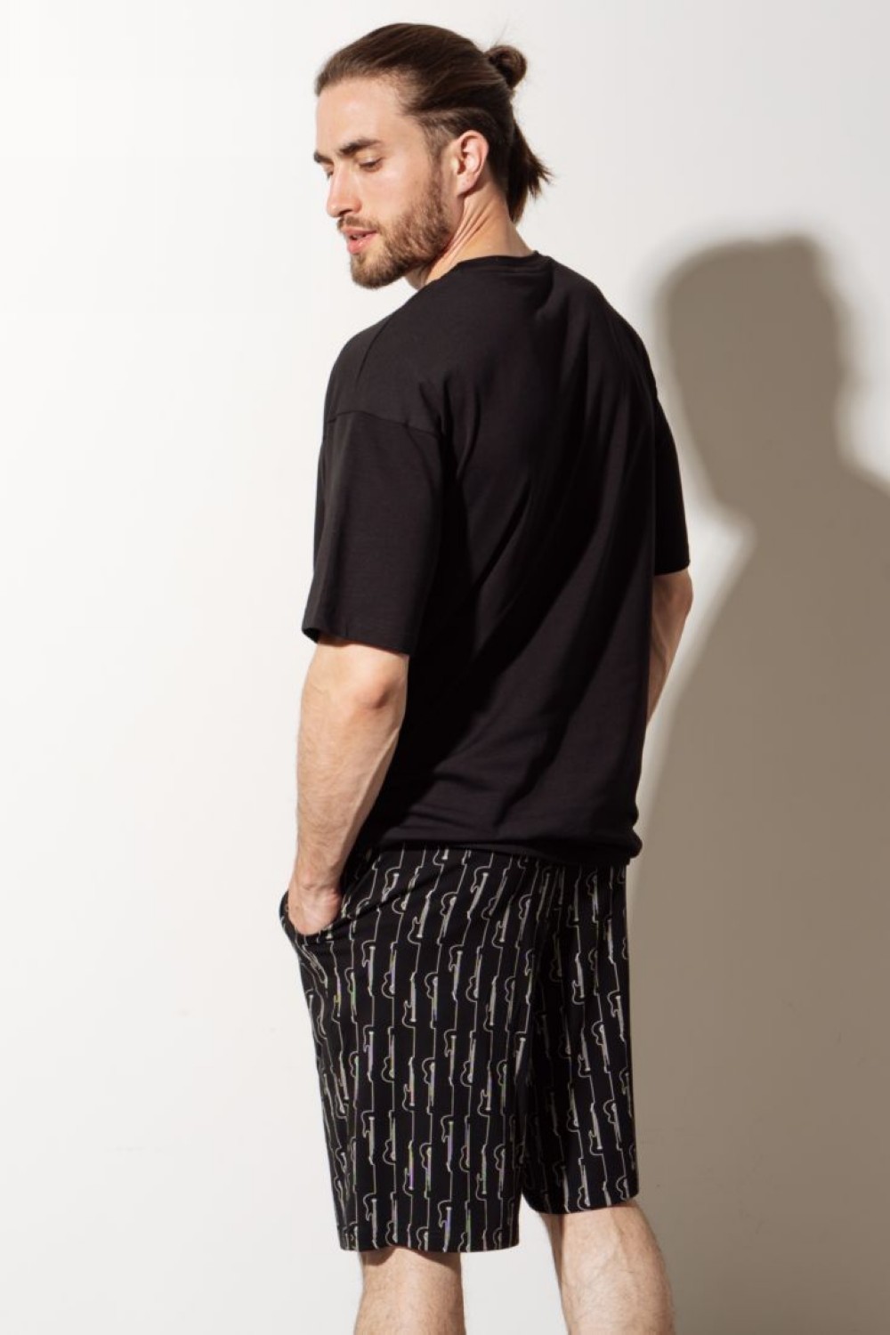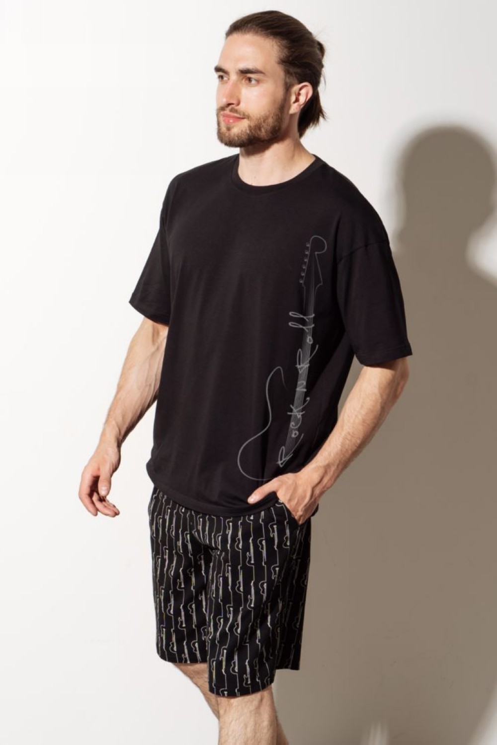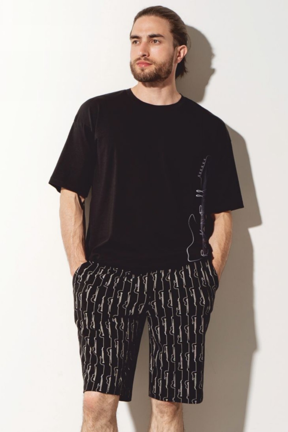 Код: 00118199 Коллекция: Bridge Артикул: 45067 Состав полный: Хл 95%, Эл 5% Название: Шорты муж,45067,3h-091(черный,чер,,гитары), (46-176) Размер: 46 Рост: 176