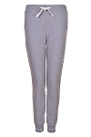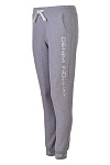 Светло-серые спортивные трикотажные брюки на манжете для девочки изготовлены на белорусской фабрике ОАО «Бобруйсктрикотаж» из тонкого футерованного полотна без начеса. Трикотажное полотно, состоящее на 71% из хлопка, гигроскопичное и воздухопроницаемое. Добавление полиэстера и эластана повышает его прочность, делает более стабильным и устойчивым к растяжению. Брюки среднего объема, полной длины, на манжете. Пояс пришивной, широкий, с вставной резинкой и шнуром белого цвета. Резинку можно регулировать по длине. По бокам изделия наклонные внутренние карманы. Манжеты широкие, из ластичного полотна. На левой брючине, параллельно боковому шву, и на манжетах нанесен декоративный принт белого цвета. Светло-серый меланжевый цвет брюк не изменится при соблюдении правил по уходу за трикотажными изделиями.