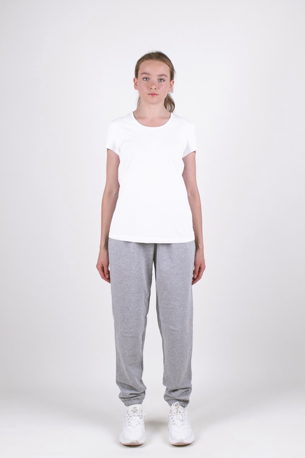 Уютные плотные мягкие серые хлопковые трикотажные брюки для девочки. Изготовлены из тонкого футера без начёса. Модель свободного кроя, с удобной высокой посадкой. Подходит для упитанных детей. По талии пришита широкая эластичная тесьма-резинка в закрытый срез. Шнура в поясе нет. В боковых швах внутренние карманы. Низ брючин собран на тесьму-резинку, вшитую в закрытый срез. Брюки согреют в прохладную погоду. В них будет ещё теплее, если их надеть поверх колготок или облегающих легинсов. 77 % натурального хлопка в составе изделия – это высокие воздухопроницаемость и гигроскопичность, гипоаллергенность и мягкость изделия, а также безопасность для здоровья. Полиэфир делает трикотажное полотно более прочным и износостойким. Брюки серого меланжевого цвета легко впишутся в повседневный гардероб вашего ребёнка. Модель простая и практичная в использовании и уходе. Длина по шаговому шву в размере 38-152 равна 66 см. Цвет серый меланж. Модель брюки в524457