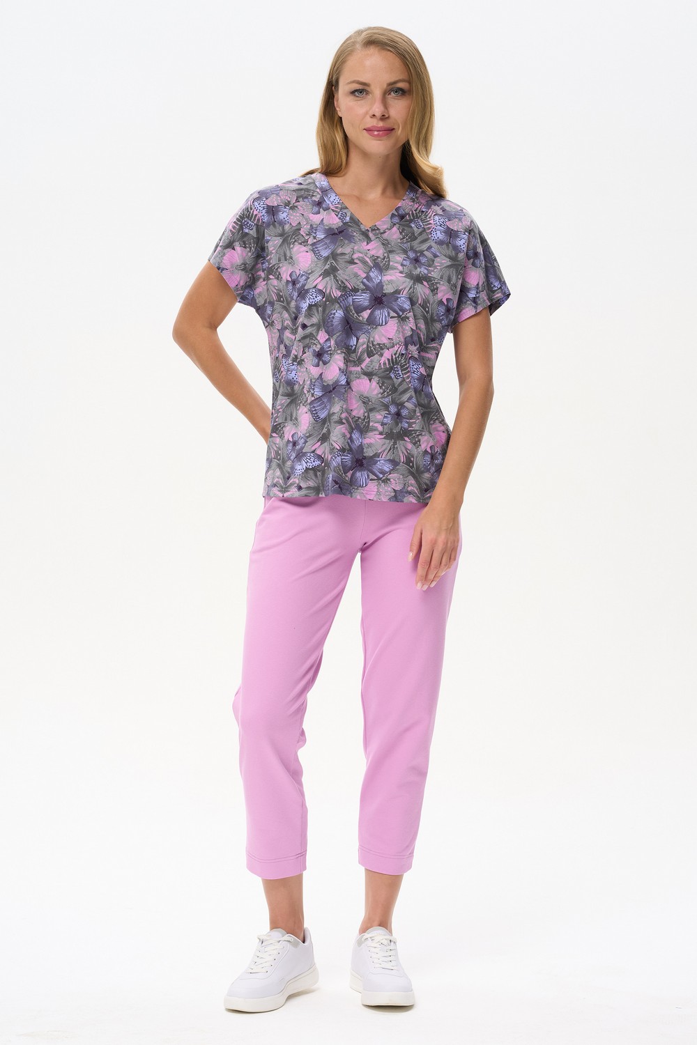 Код: 00123855 Коллекция: Солнечный день Артикул: b0487 Состав полный: Хл 80%, Пэ 14%, Эл 6% Название: Брюки жен,b0487,b0487-o37.4s00(лиловый,роз,,), (46-164) Размер: 46 Рост: 164