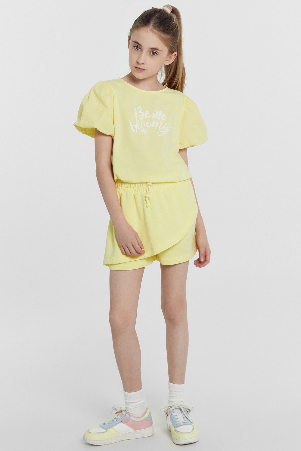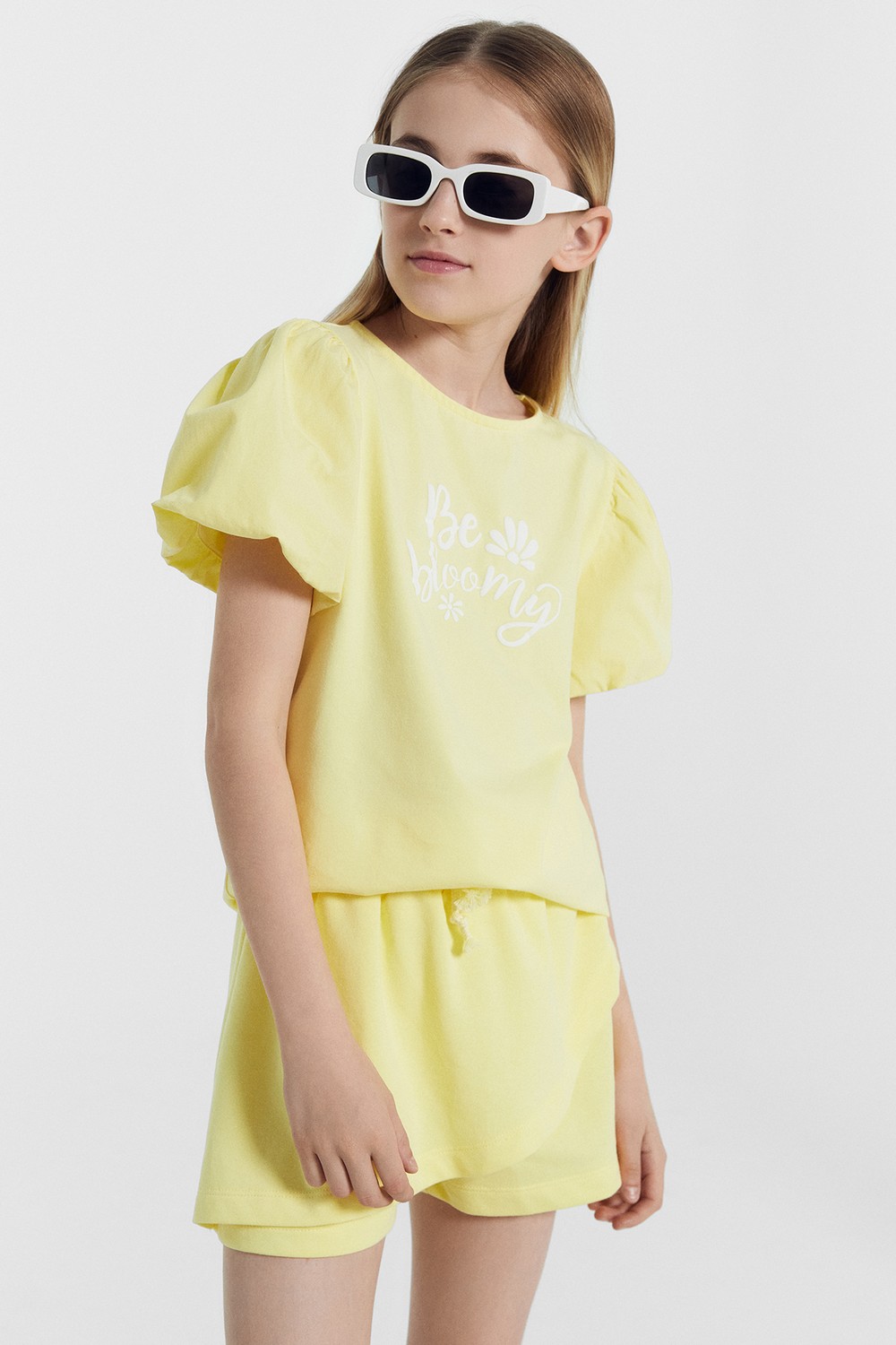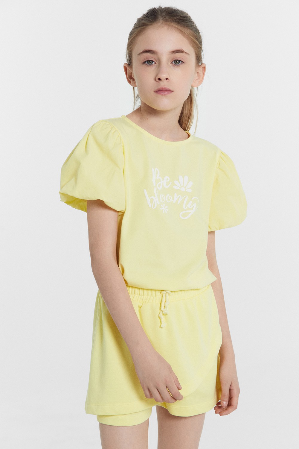 Код: 00119176 Коллекция: - Артикул: 117876 Состав полный: Хл 95%, Эл 5% Название: Джемпер дев,117876,24-26337п-14,24-26338п-14(желтый +печать,жел,,Будь цветущей), (28-110) Размер: 28 Рост: 110