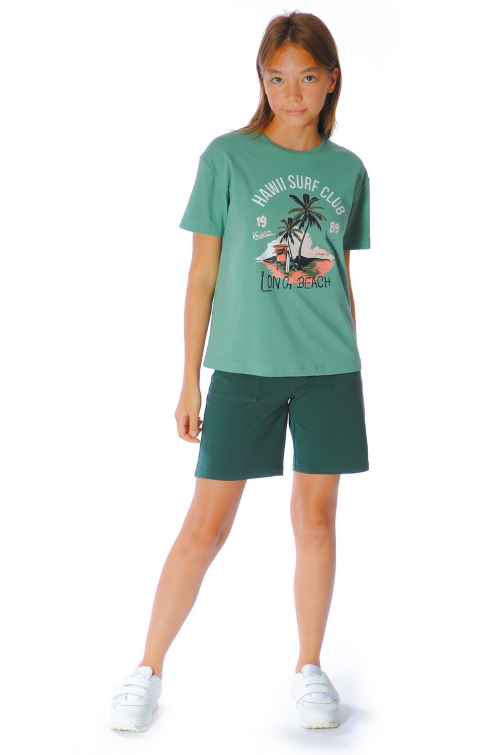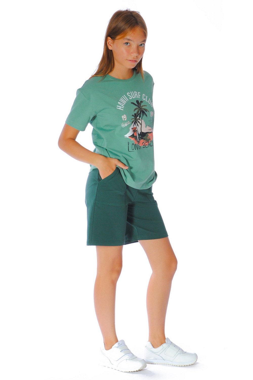 Код: 00121982 Коллекция: - Артикул: 30-588 Состав полный: Хл 92%, Эл 8% Название: Джемпер дев,30-588,30-5889(петроль,зел-св,,пальмы), (34-140) Размер: 34 Рост: 140