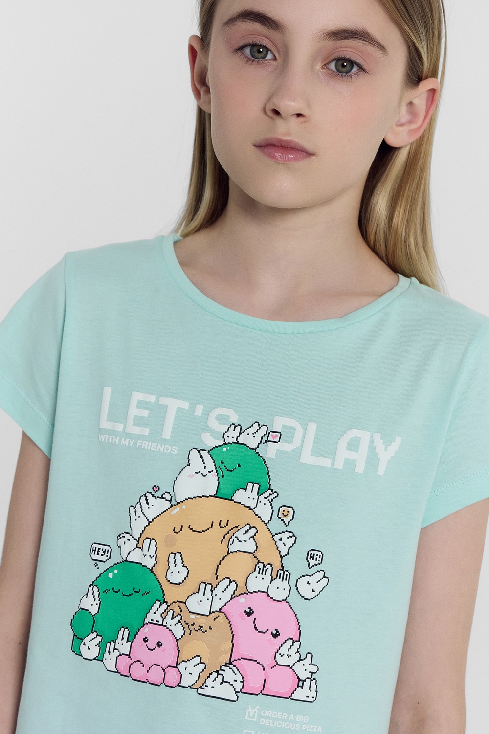 Код: 00123204 Коллекция: - Артикул: 117892 Состав полный: Хл 100% Название: Джемпер дев,117892,24-30098п-0,24-30097п-0(бирюзовый +печать,лазур,,зайки), (28-104) Размер: 28 Рост: 104