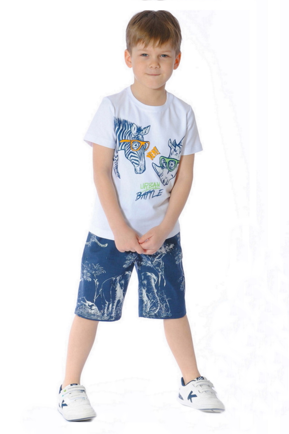 Код: 00121837 Коллекция: - Артикул: 13-345 Состав полный: Модал 47%, Хл 47%, Эл 6% Название: Фуфайка мал,13-345,13-3453(белый,бел,,носорог и зебра), (26-104) Размер: 26 Рост: 104