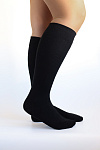 Тёплые тонкие гладкие чёрные женские гольфы с шерстью и хлопком. 83% натуральных волокон в составе гольфов (60% хлопка и 23%шерсти) – это гарантия безопасности для здоровья ваших ног, отличная гигроскопичность и воздухопроницаемость изделия, комфорт и уют в любое время суток. Небольшая добавка полиамида повышает износостойкость данной модели, а эластан позволяет гольфам хорошо прилегать к ноге. Широкая двойная резинка не позволит гольфам сползти вниз, а мягкий шов на мыске не натрёт пальцы во время эксплуатации. Усиленные пятка и мысок продлят срок службы изделия. Две пары одинаковых гольфов в наборе - приятный бонус, позволяющий не выкидывать один оставшийся гольф, если второй порвался или каким-то чудом исчез, например, во время стирки. Размер и цвет гольфов сохранятся неизменными при соблюдении правил по уходу, указанных на его ярлыке. Цвет чёрный. Модель гольфы stmg6.
