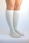 Тёплые тонкие гладкие однотонные молочного цвета женские гольфы с шерстью и хлопком. 83% натуральных волокон в составе гольфов (60% хлопка и 23%шерсти) – это гарантия безопасности для здоровья ваших ног, отличная гигроскопичность и воздухопроницаемость изделия, комфорт и уют в любое время суток. Небольшая добавка полиамида повышает износостойкость данной модели, а эластан позволяет гольфам хорошо прилегать к ноге. Широкая двойная резинка не позволит гольфам сползти вниз, а мягкий шов на мыске не натрёт пальцы во время эксплуатации. Усиленные пятка и мысок продлят срок службы изделия. Размер и цвет гольфов сохранятся неизменными при соблюдении правил по уходу, указанных на его ярлыке. Две пары одинаковых гольфов в наборе - приятный бонус, позволяющий не выкидывать один оставшийся гольф, если второй порвался или каким-то чудом исчез, например, во время стирки. Цвет молочный. Модель гольфы stmg6.