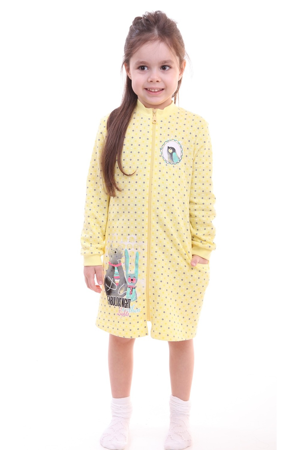 Код: 00036686 Артикул: р728448 Состав полный: Хл 100% Название: Халат дев,р728448,р728448(желтый,жел,,звери кружки), (26-86,92) Размер: 26 Рост: 86,92