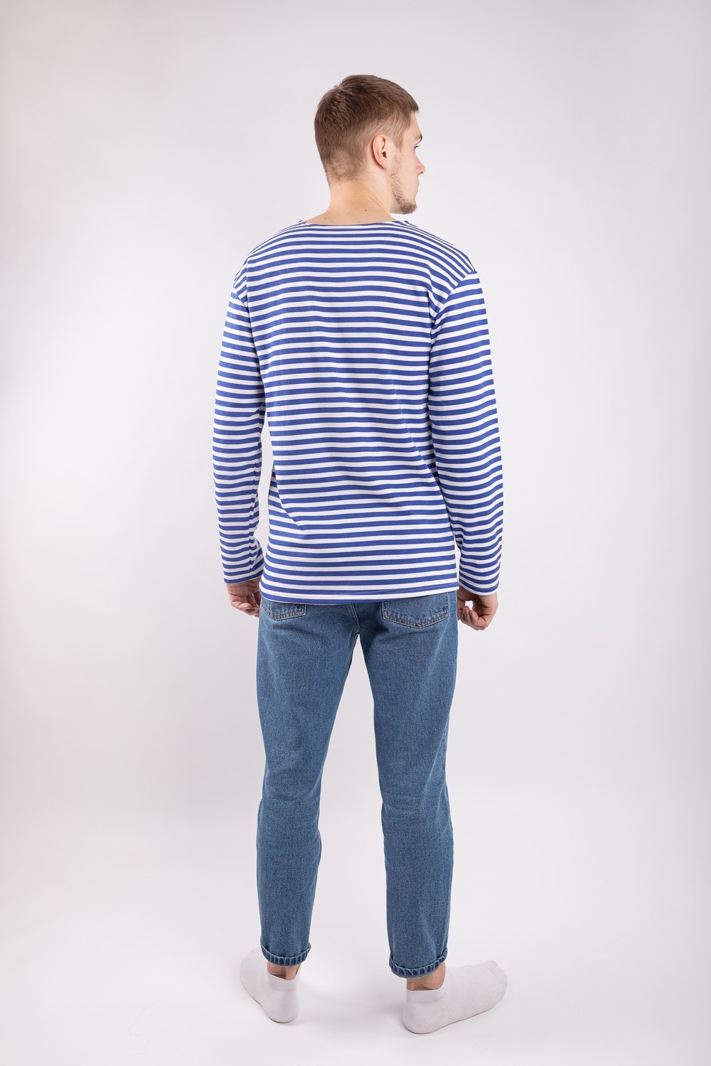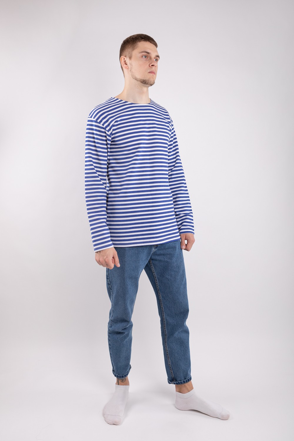 Ты – морячка, я – моряк! Без тельняшки мне никак! Тельняшку, или «тельник», любят все от мала до велика. Она вошла в наш быт как повседневный предмет гардероба. Её носят в качестве бельевого изделия в холодное время года и как верхний трикотаж в дачный и отпускной сезон. Тельняшка большого размера может стать полезным подарком мужчине крупной комплекции. Она изготовлена из тонкого кулирного трикотажного полотна. 100% хлопка в его составе – это гарантия комфорта для тела и безопасности для здоровья. Такое полотно мягкое, гигроскопичное, воздухопроницаемое и гипоаллергенное. Изделие прямого покроя с длинными рукавами и круглой горловиной. Горловина, низ изделия и рукавов обработаны плоскими швами вподгибку. Конструктивные детали соединены аккуратными стачными швами и не создают дискомфорта. При соблюдении всех рекомендаций по уходу за трикотажными изделиями фуфайка сохранит свои форму и цвет длительное время.