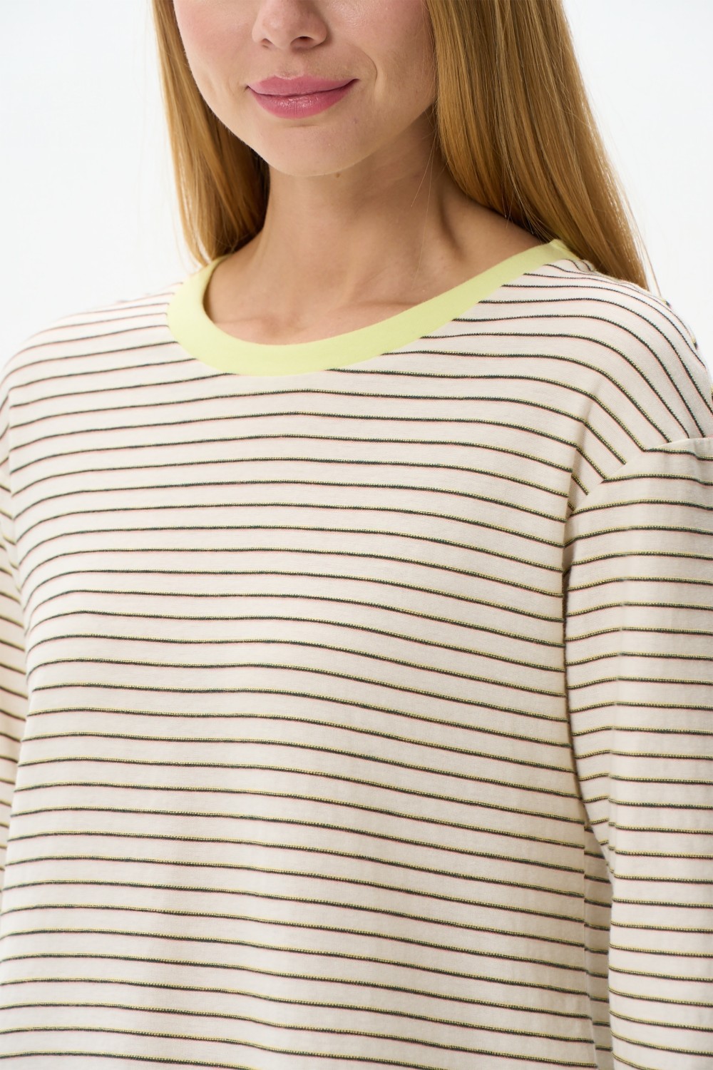 Код: 00122845 Коллекция: - Артикул: k0305 Состав полный: Хл 100% Название: Джемпер жен,k0305,k0305-s04.3s04(экрю,молоч,,зелен полос), (50-164) Размер: 50 Рост: 164