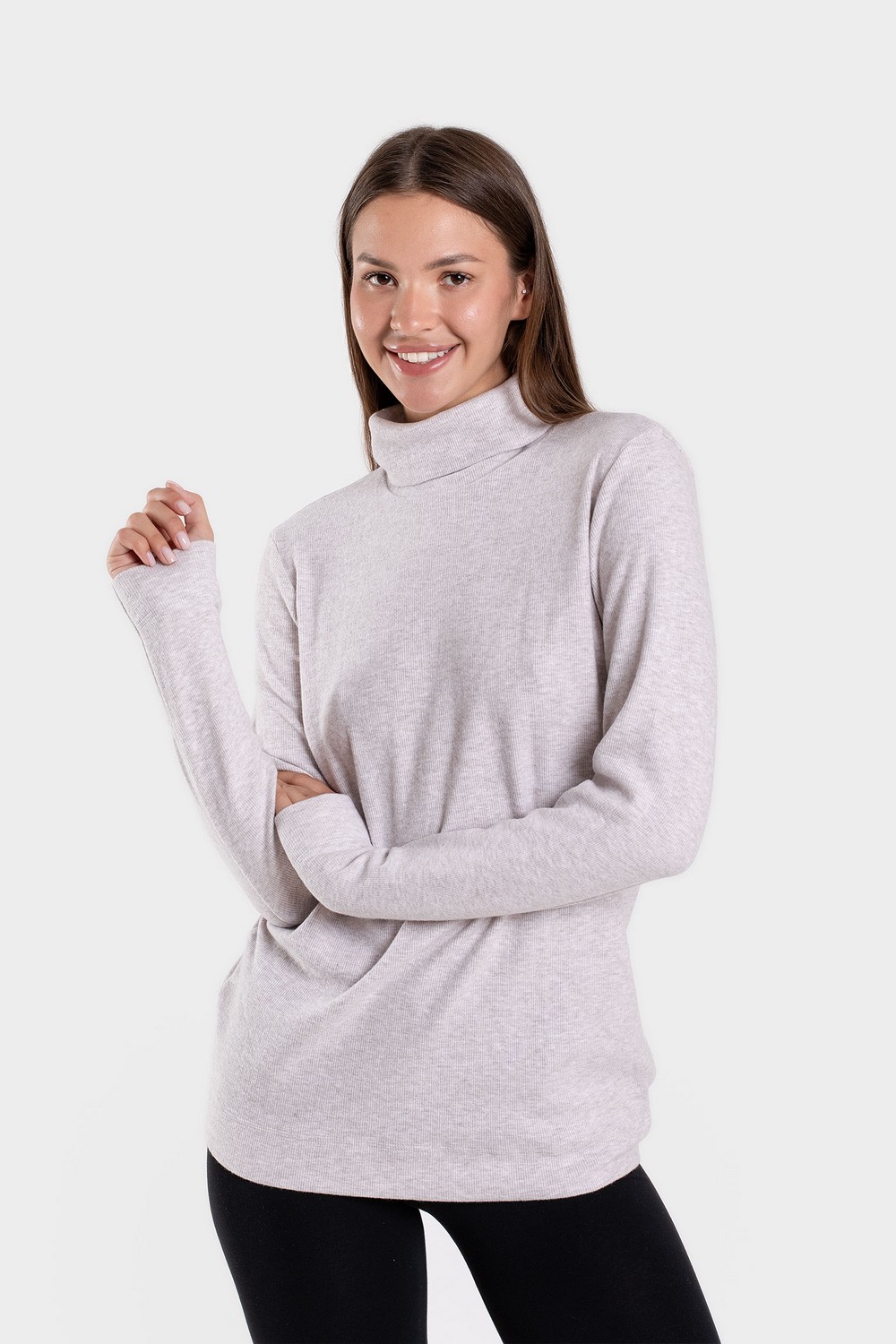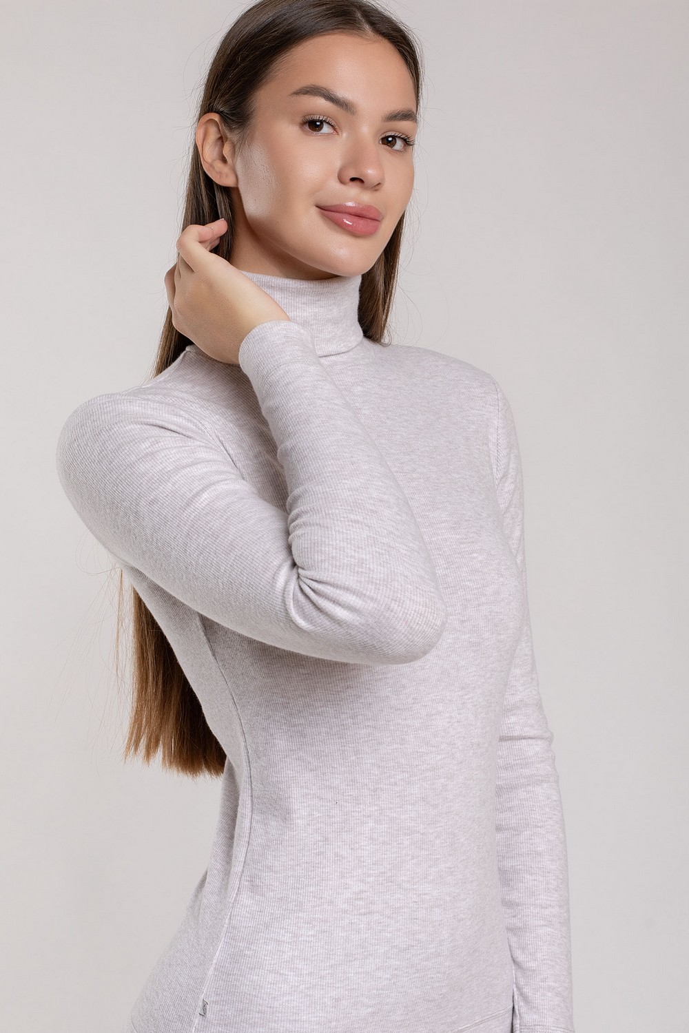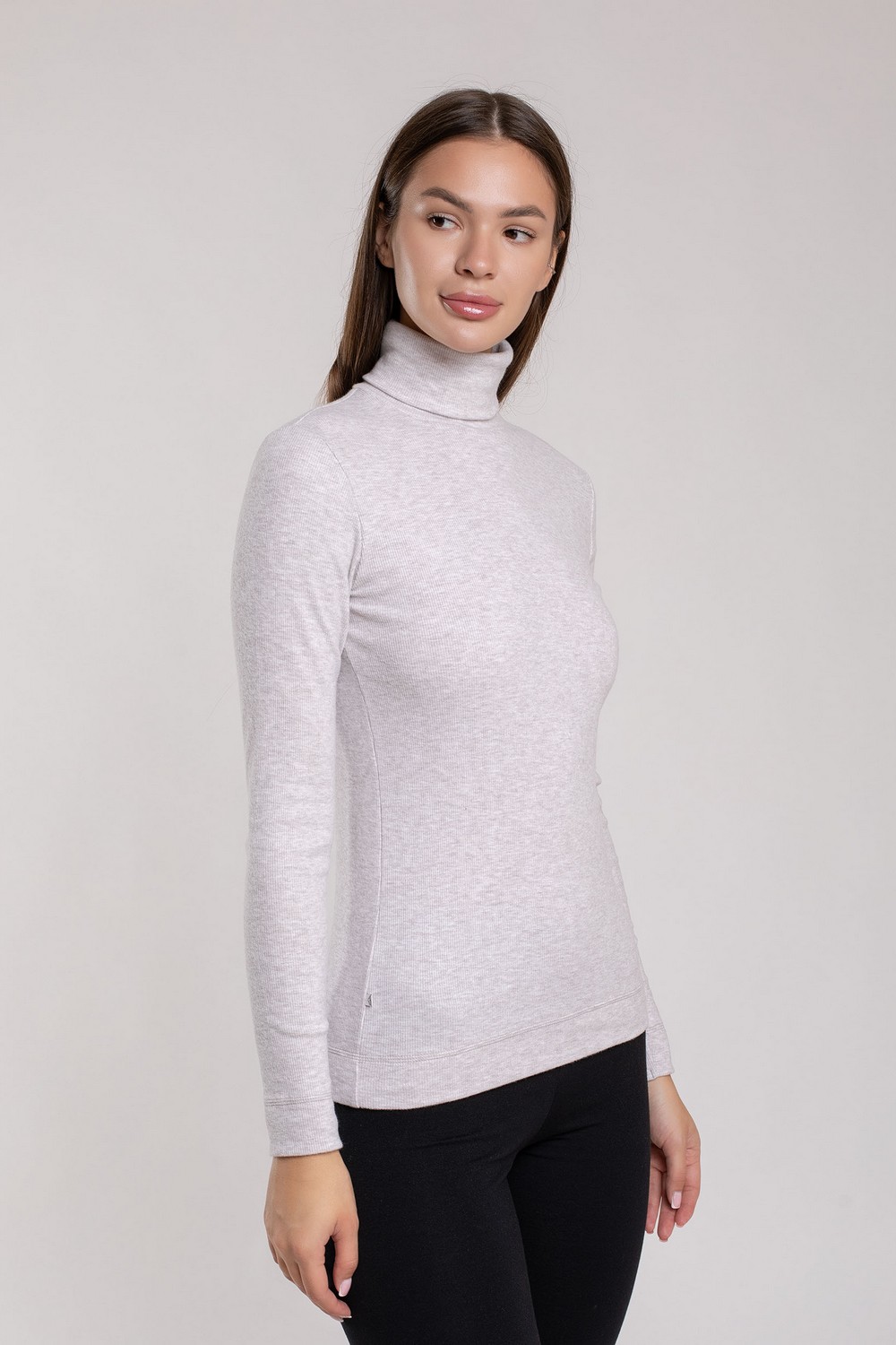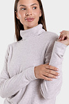 Утепленная женская водолазка, бадлон, гольф изготовлена из высококачественного трикотажного полотна кашкорсе с начесом с лицевой стороны. Наличие в его составе 75% натурального хлопка делают такое полотно гигроскопичным, «дышащим», гипоаллергенным. Изделие из него мягкое, приятное на ощупь, хорошо сохраняет форму и не вытягивается в процессе эксплуатации. Модель слегка приталенная, рукава полной длины, воротник-стойка высокий с отворотом. Наличие эластана и полиэстера в составе полотна, продуманная конструкция обеспечивают хорошую посадку по фигуре и свободу движений. Приятный меланжевый оттенок светло-бежевого цвета комплектуется с одеждой различных оттенков и рисунков. Прочные эластичные швы, текстурированные нити, специальные закрепки на швах – гарантия долговечности изделия при соблюдении правил по уходу за ним. Модель джемпер s9145