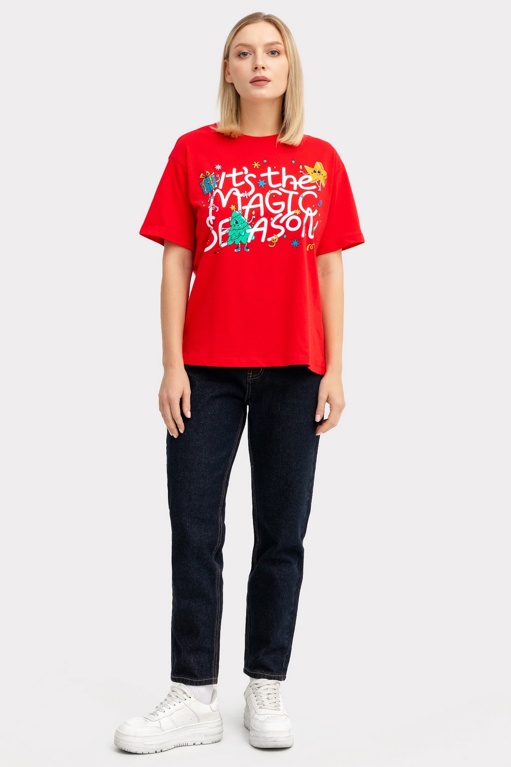 Код: 00121137 Коллекция: - Артикул: 112678 Состав полный: Хл 100% Название: Джемпер жен,112678,22/21762п-0(красный +печать2,красн,,ёлки подарки), (44-164,170) Размер: 44 Рост: 164,170
