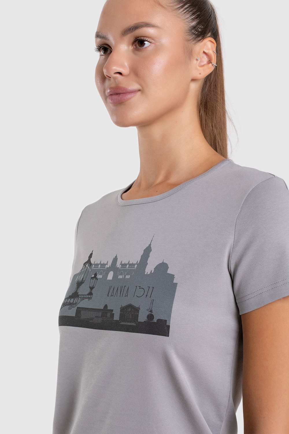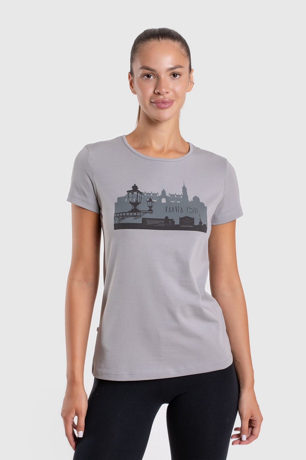 Женская серая хлопковая футболка, джемпер с изображением достопримечательностей Калуги. Изготовлена из высококачественного трикотажного кулирного полотна пенье. Модель прилегающего силуэта, с короткими рукавами и круглым вырезом горловины. 95% натурального хлопка в составе полотна – это комфорт и безопасность для вашего здоровья на протяжении всего дня. Хлопок обладает отличной гигроскопичностью, воздухопроницаемостью, гипоаллергенностью и приятен для тела. Стирать и гладить изделие рекомендуется с изнаночной стороны. Тщательно проработанная конструкция, прочные эластичные швы со специальными закрепками, безопасные красители – залог отличной посадки по фигуре и долговечности джемпера. Модель можно использовать в качестве повседневной одежды, а также для активного отдыха. Футболка с Калужским принтом - отличный подарок друзьям и родственникам. Цвет грей (серый). Модель джемпер s6367