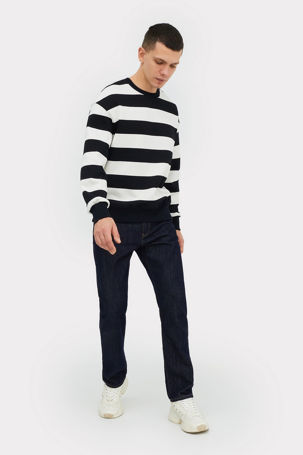 Код: 00124622 Коллекция: - Артикул: 121865/1 Состав полный: Хл 80%, Пэ 20% Название: Джемпер муж,121865/1,24-3988п-7п(черно -молочная полоска,,,), (46-170,176) Размер: 46 Рост: 170,176