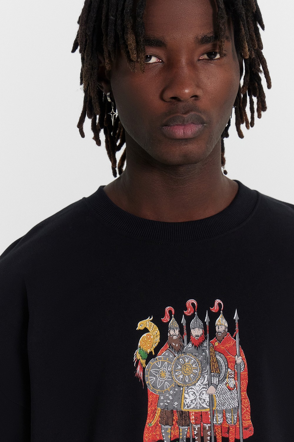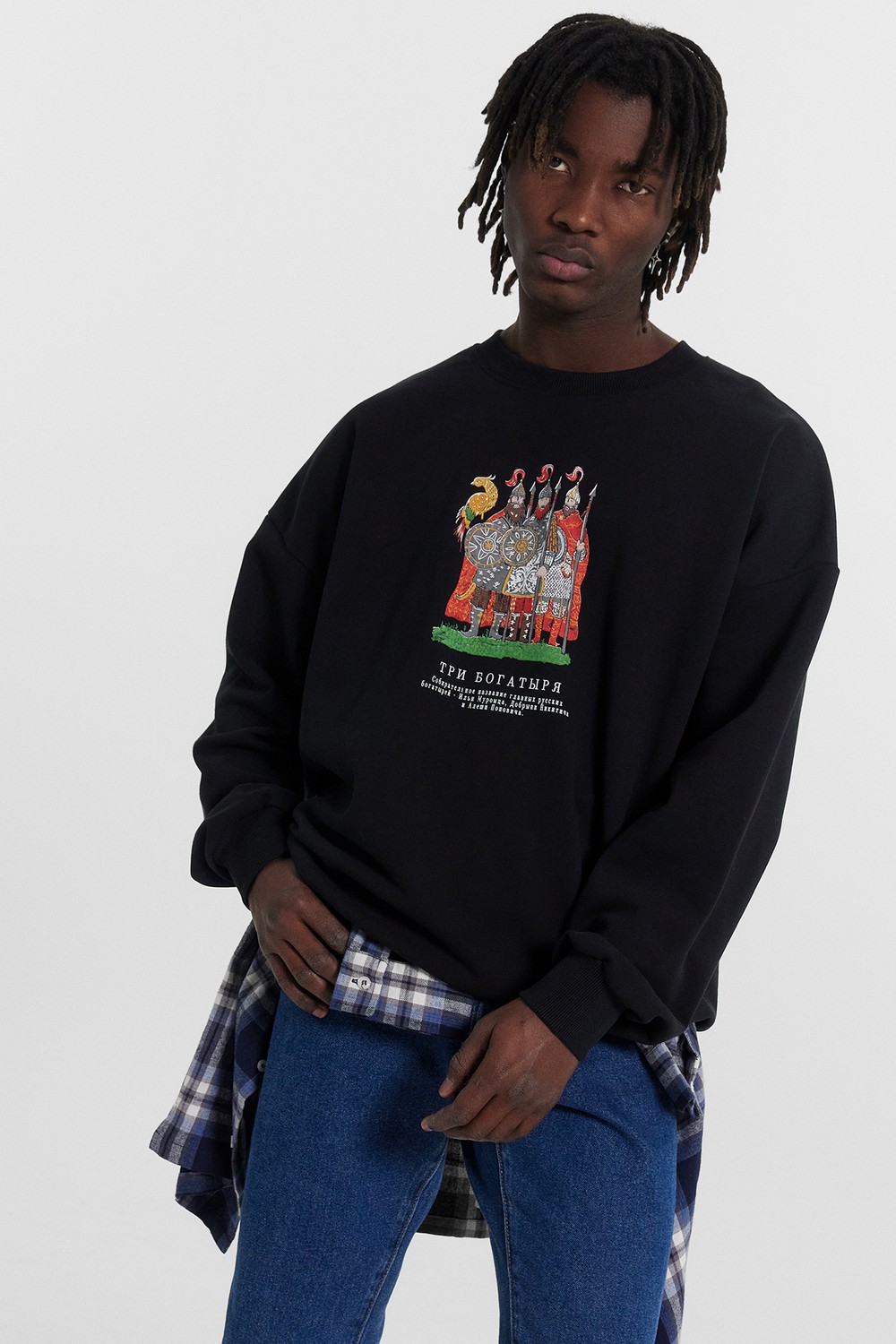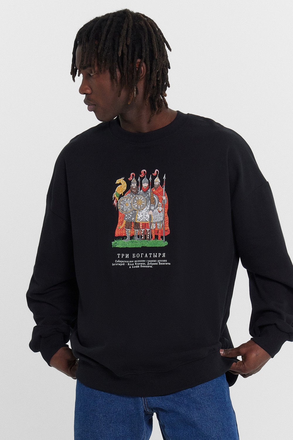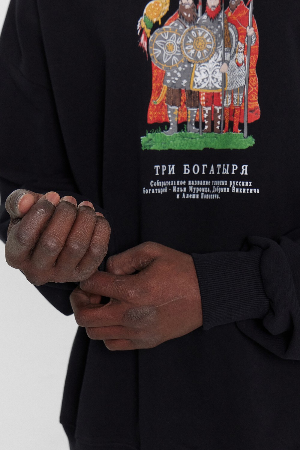 Код: 00124629 Коллекция: - Артикул: 121866/1 Состав полный: Хл 100% Название: Джемпер муж,121866/1,24-4100п-7(3)(черный +печать,чер,,три богатыря), (54-182,188) Размер: 54 Рост: 182,188