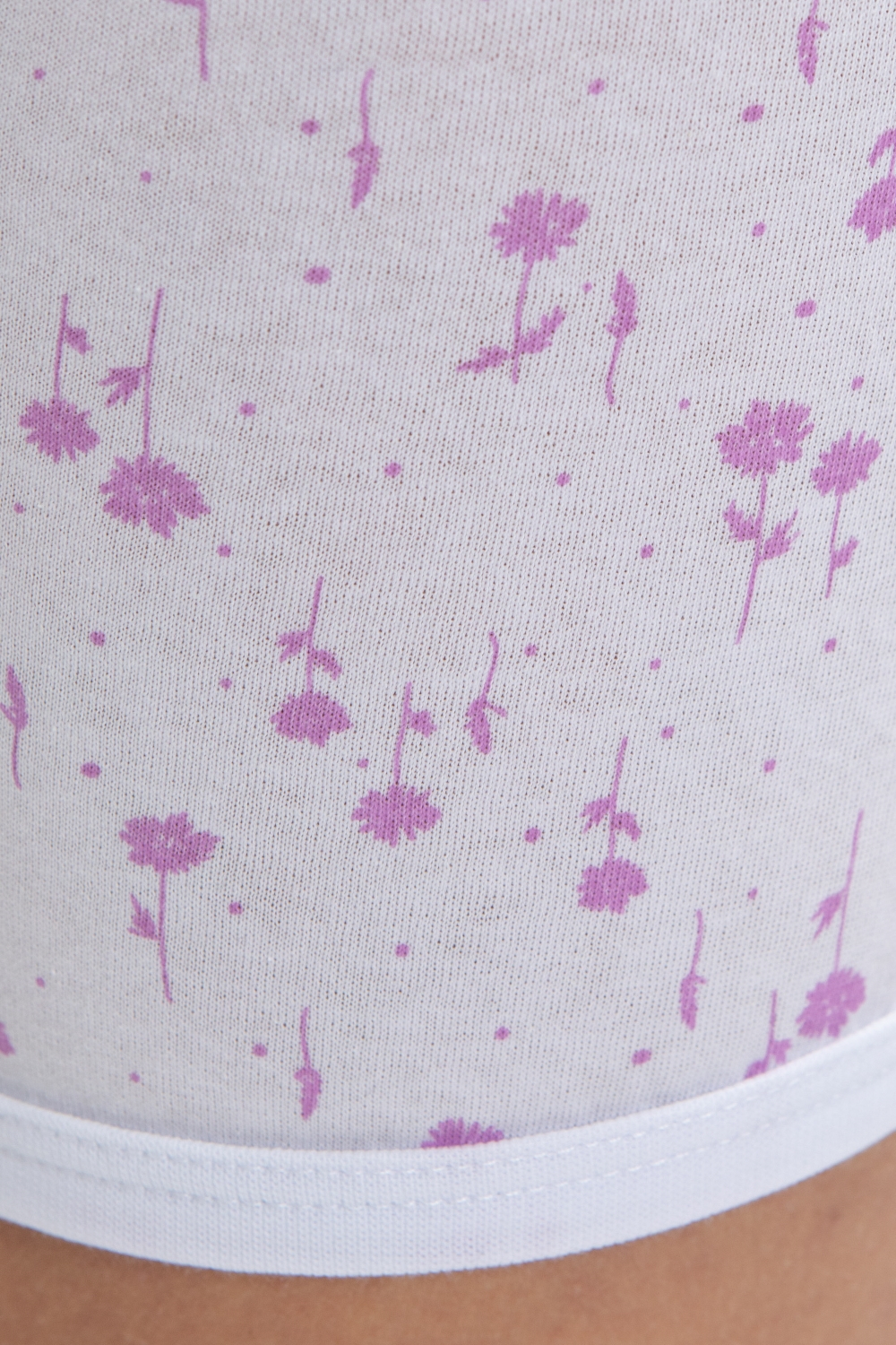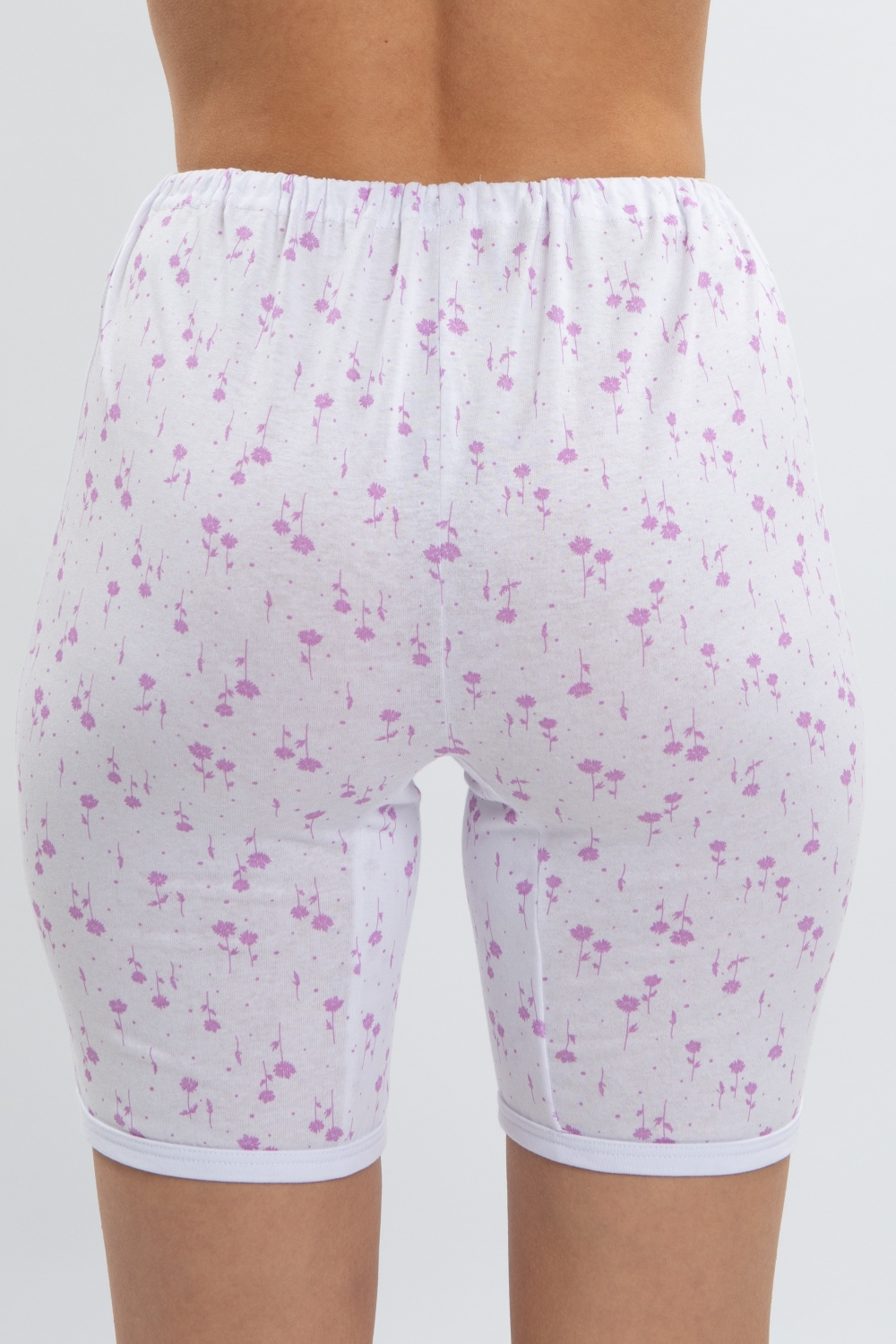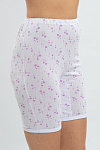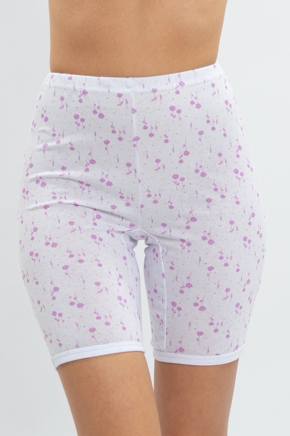 Длинные трикотажные хлопковые женские трусы или, правильнее, панталоны, Белорусской фабрики «Свитанак» - это классика женского нижнего белья со времён СССР. В любой точке нашей огромной страны найдется немало женщин элегантного возраста, желающих приобрести комфортные панталоны из хлопка. Эта модель женских панталон сочетает в себе и демократичную цену, и натуральный состав, и удобство конструкции. Розовато-сиреневые цветочки по белому фону полотна украшают изделие. Панталоны с классической высокой посадкой. Верхний срез обработан традиционным швом в подгибку. Резинка вставная, регулируемая. По бокам аккуратные стачные швы. Ножка средней длины заканчивается широкой эластичной тесьмой, мягко облегающей ногу. Широкая двойная ластовица пришита плоскими швами. Тонкое мягкое кулирное полотно из 100%-го хлопка обладает хорошей гигроскопичностью и воздухопроницаемостью, что очень ценно в жаркую летнюю погоду. Панталоны предназначены для ежедневного ношения, легко стираются и гладятся. Модель панталоны в007006