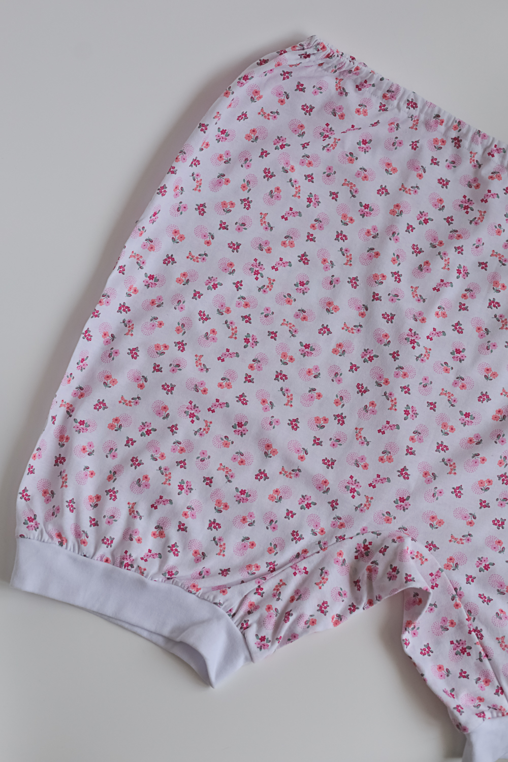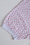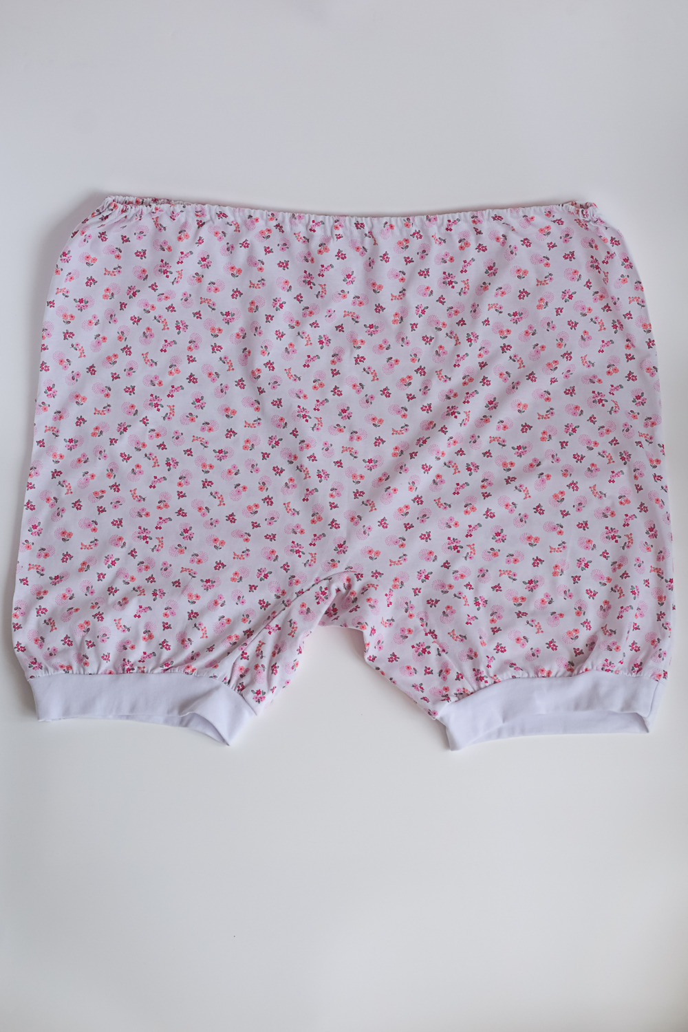 Большеразмерные тонкие трикотажные хлопковые женские панталоны из кулирного полотна с набивным рисунком – важный функциональный элемент бельевого гардероба для корпулентных дам с выразительными формами. Модель полномерная, с высокой линией талии, широкой двойной ластовицей и длинной ножкой. Верхний срез обработан плоским швом вподгибку, резинка вставная, регулируемая по длине. По нижнему срезу ножки пришита широкая эластичная манжета. Торс скроен из двух деталей, соединенных по бокам изделия. Все соединительные швы стачные. 100%-й хлопок, из которого изготовлено трикотажное полотно, гигроскопичен и воздухопроницаем, поэтому в таких панталонах женщина чувствует себя комфортно весь день. Цветочный рисунок на белом фоне оживляет внешний вид белья, делает его интереснее. Изделие сохранит свои форму и цвет при соблюдении правил по уходу, указанным на его ярлыке. Модель панталоны р003343