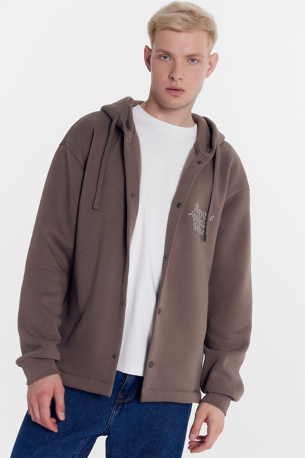 Код: 00124570 Коллекция: - Артикул: 121171/1 Состав полный: Хл 68%, Пэ 32% Название: Куртка муж,121171/1,24-3381п-7п(сокол +печать,корич,,надпись), (52-182,188) Размер: 52 Рост: 182,188