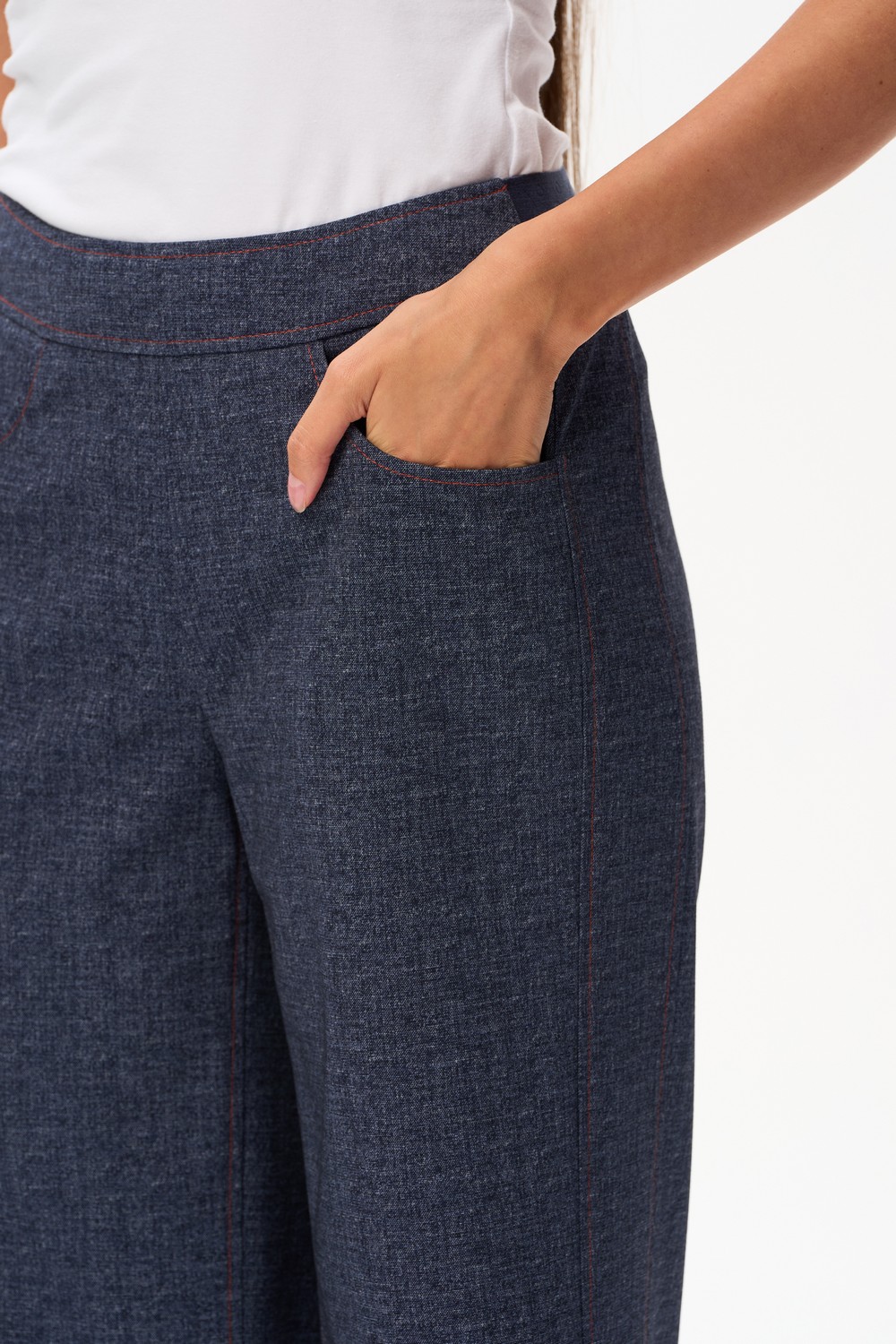 Код: 00124948 Коллекция: Гладиолус Артикул: b2410 Состав полный: Вис 70%, Пэ 25%, Эл 5% Название: Брюки жен,b2410,b2410-d50.6s03(синий,синмел,,), (44-164) Размер: 44 Рост: 164