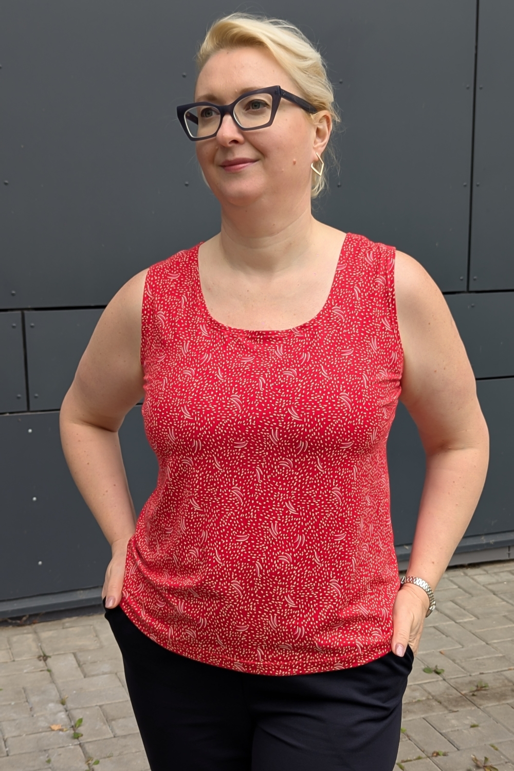 Код: 00123721 Коллекция: - Артикул: а1067 Состав полный: Вис 95%, Эл 5% Название: Майка жен,а1067,а106715(красный,красн,-,крапинки), (46-158,164) Размер: 46 Рост: 158,164