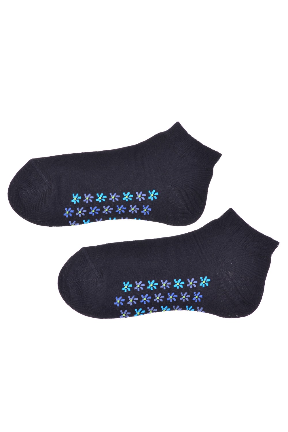 Женские носки с укороченным паголенком удобны и эстетичны. Их можно надевать и в спортивную обувь, и в домашние тапочки. Насыщенный чёрный цвет этих носков практичен и сочетается с тёмными брюками или джинсами. Яркий цветочный рисунок на стопе позабавит взгляды окружающих, если вам придётся разуться. Носки не только интересны по дизайну, но и комфортны на ноге. Двойная резинка мягко облегает щиколотку, плоский шов на мыске не трёт пальцы. Хлопок, входящий в состав изделия, даёт возможность коже «дышать», полиэфир и эластан обеспечивают долговечность и хорошую формоустойчивость. Усиление в области мысков и пяток препятствует быстрому истиранию. При соблюдении правил по уходу изделие сохраняет свои цвет и форму.