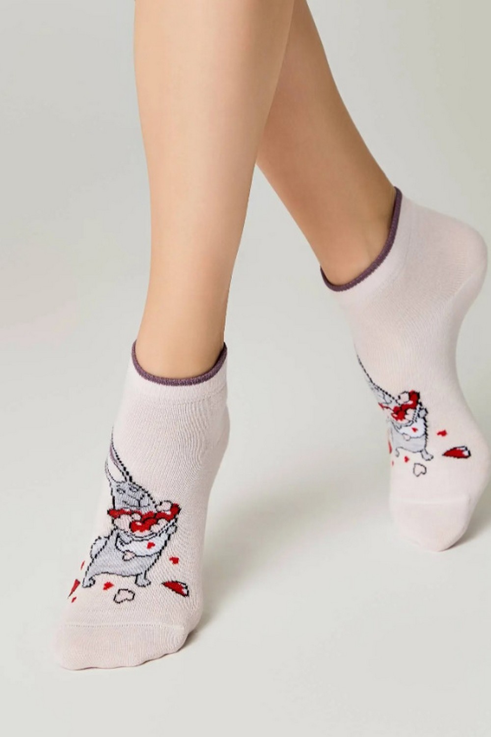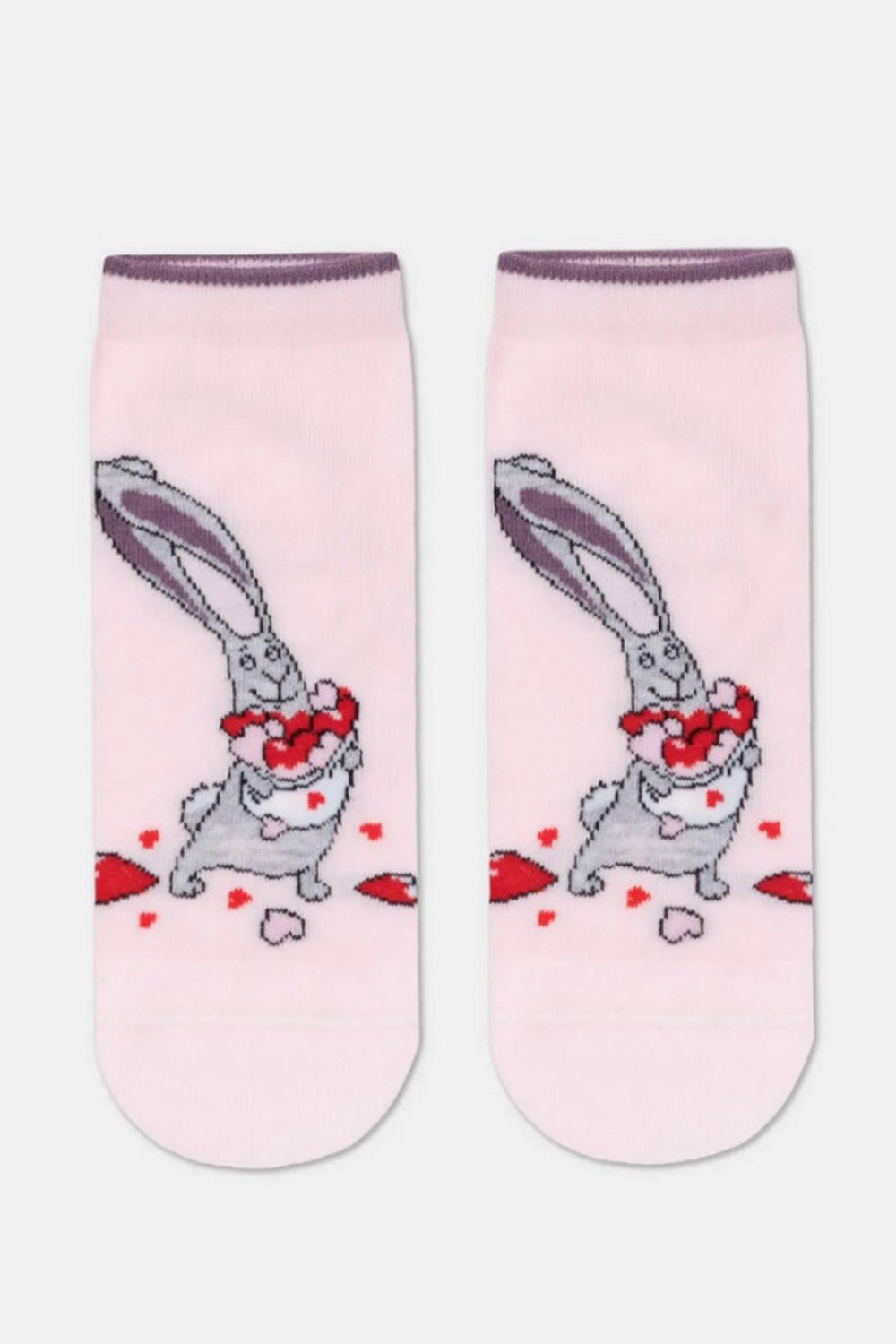 Код: 00119107 Коллекция: - Артикул: б1145 Состав полный: Хл 66%, Па 32%, Эл 2% Название: Носки жен,б1145,642(св.розовый,роз-св,,заяц с сердечками), (23) Размер: 23
