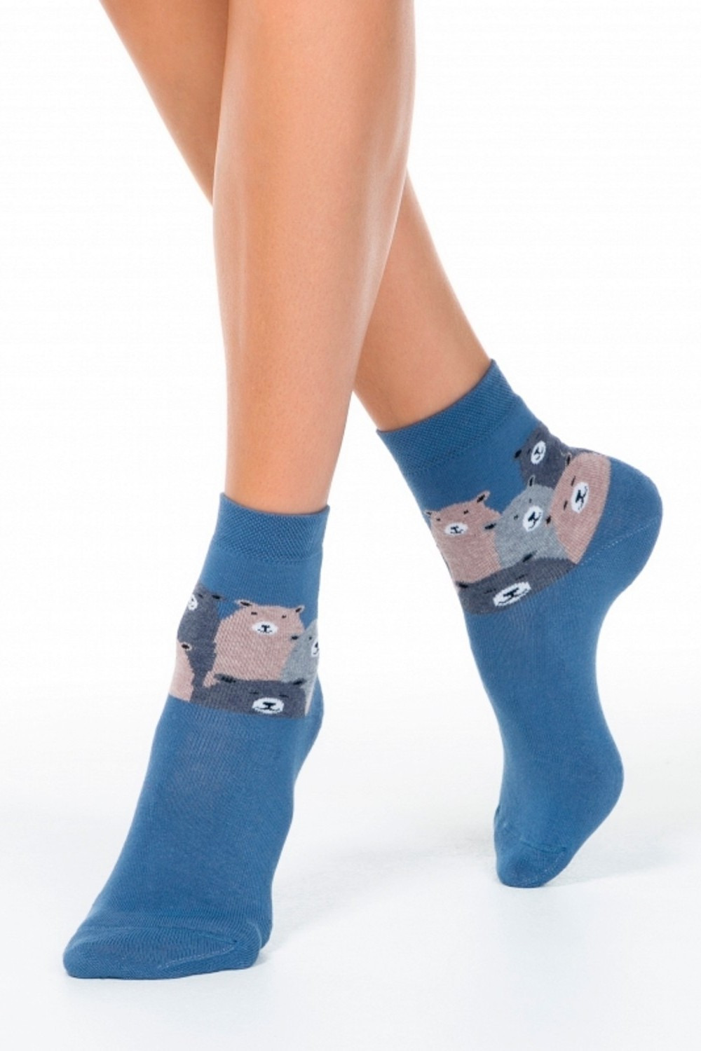 Код: 00099265 Коллекция: - Артикул: б1408 Состав полный: Хл 83%, Па 16%, Эл 1% Название: Носки жен,б1408,357(джинс,син,,медведи), (23) Размер: 23
