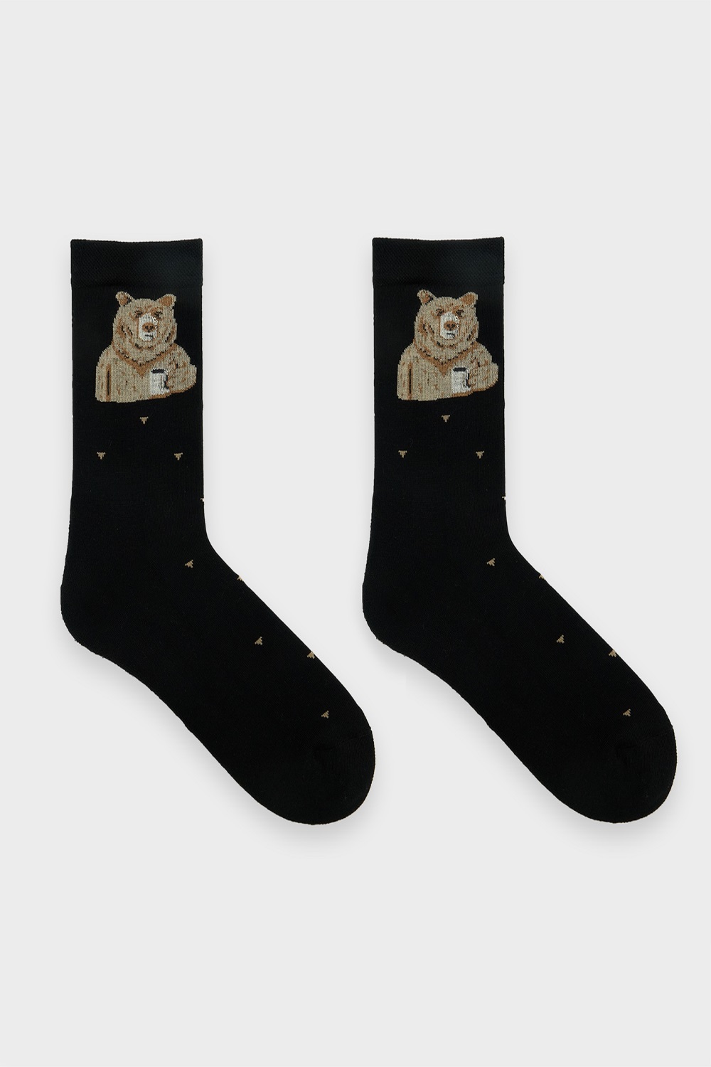 Код: 00122076 Коллекция: - Артикул: 24603k Состав полный: Хл 85%, Па 14%, Эл 1% Название: Носки муж,24603k,2943(черный,чер,,мишка), (25-27) Размер: 25-27