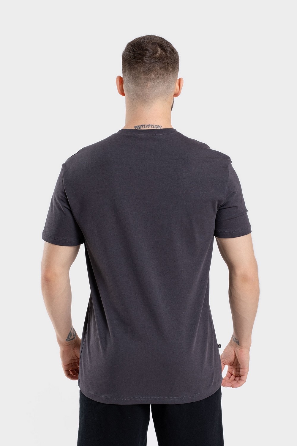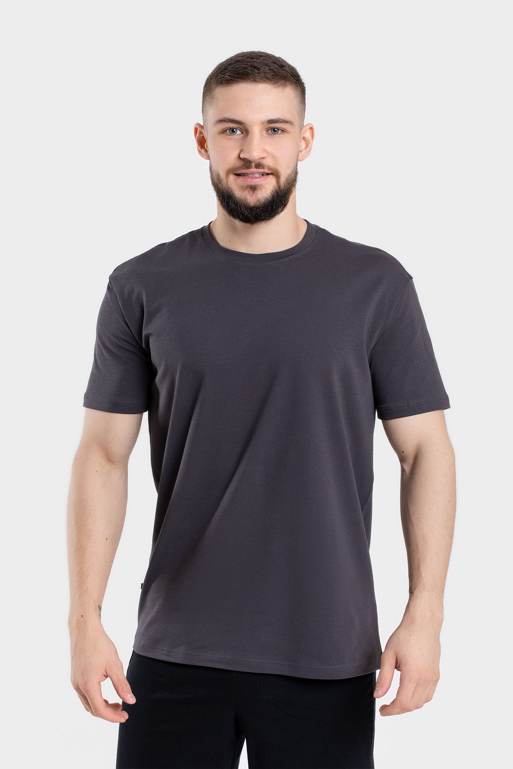 Классическая тёмно-серая мужская футболка свободного кроя. Сшита из высококачественного кулирного полотна пенье, содержащего 95% натурального хлопка, который характеризуется высокой гигроскопичностью, воздухопроницаемостью, безопасностью для здоровья, гигиеничностью. Добавление эластана повышает прочность и формоустойчивость изделия. Удачная конструкция, надежные эластичные швы, текстурированные нити, специальные закрепки на швах - гарантия долговечности изделия при соблюдении правил по уходу за ним. Модель s7415