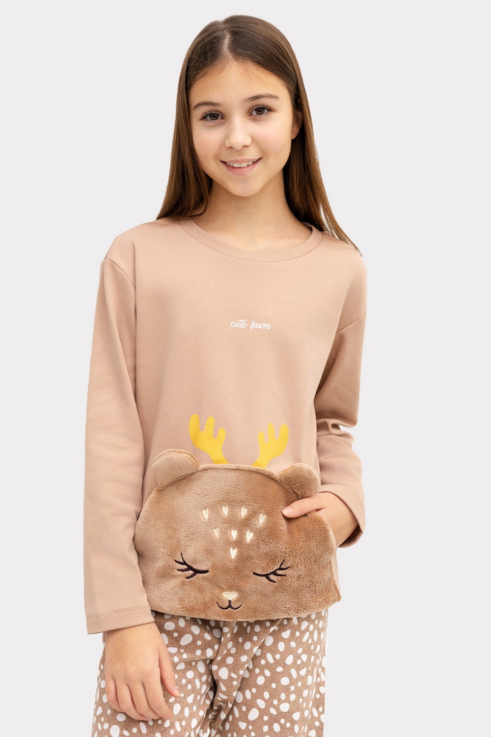Код: 00120673 Коллекция: - Артикул: 567742 Состав полный: Хл 87%, Пэ 13% Название: Пижама дев,567742,24-обр26669пп-2,24-обр26668пп-2(св.тауп +молочные пятнышки,беж,,ушки), (26-98) Размер: 26 Рост: 98
