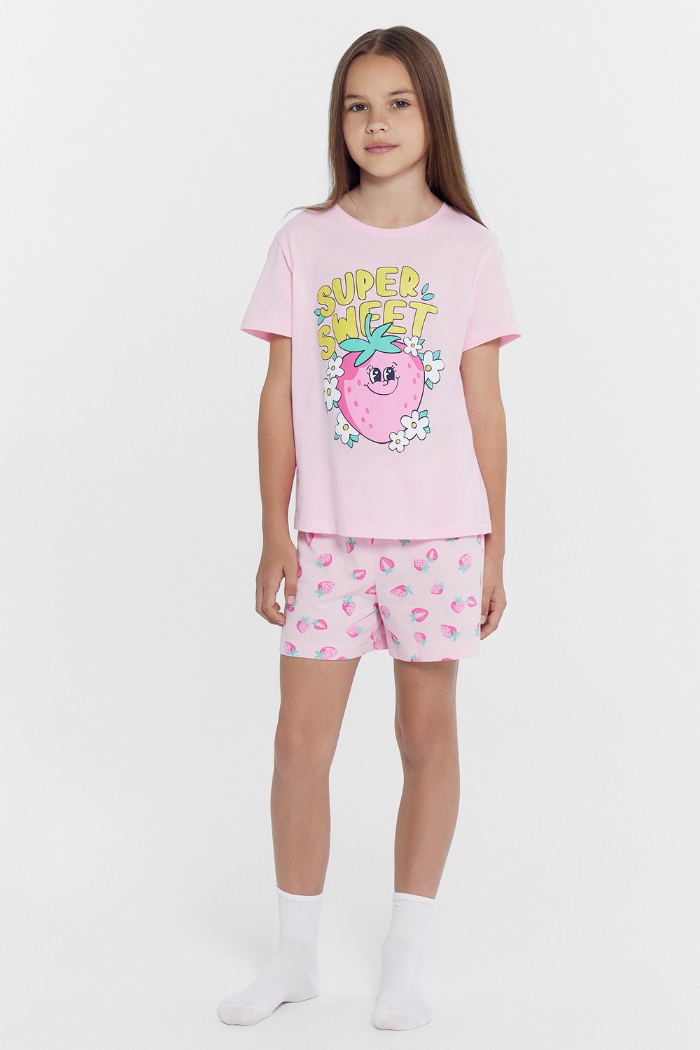 Код: 00120654 Коллекция: - Артикул: 567727 Состав полный: Хл 100% Название: Пижама дев,567727,24-26528пп-0(волшебная сказка +клубнички на розо,роз,,клубника), (28-104) Размер: 28 Рост: 104