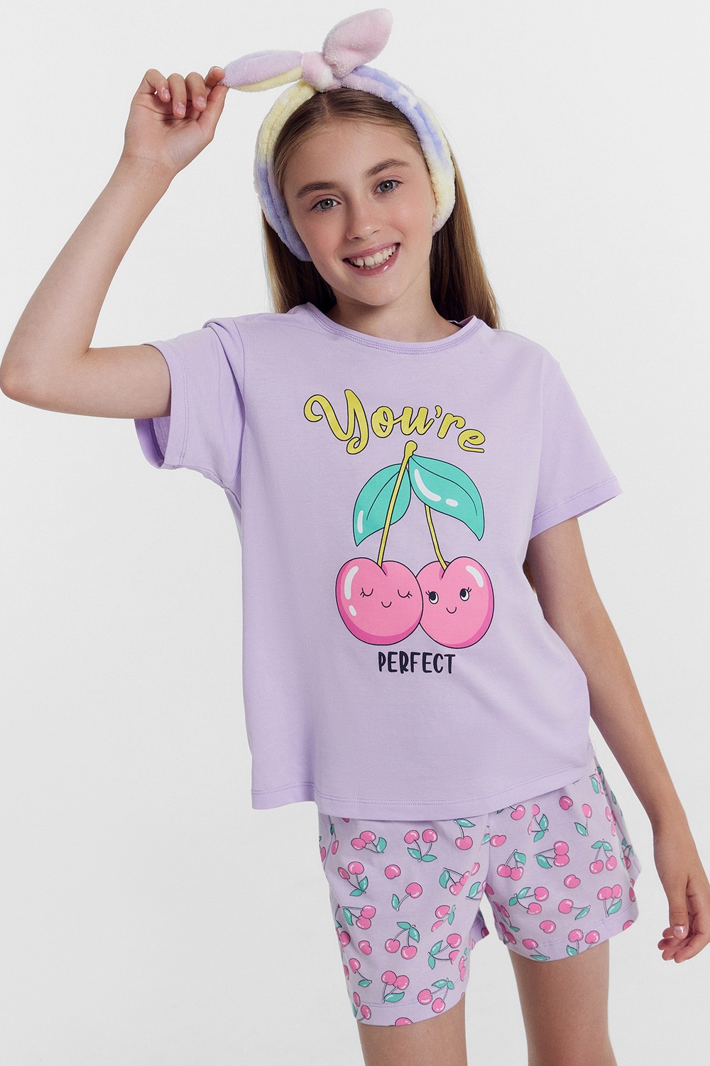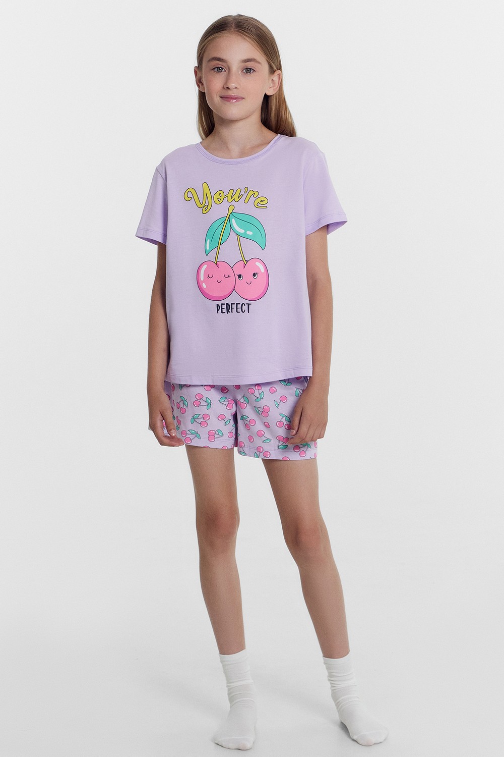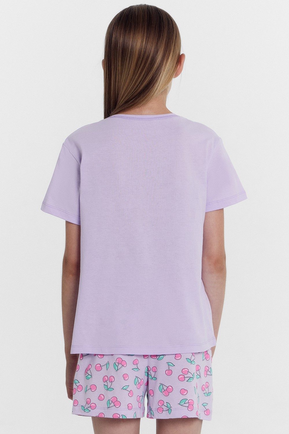 Код: 00122509 Коллекция: - Артикул: 567727 Состав полный: Хл 100% Название: Пижама дев,567727,24-26528пп(св.лиловый +вишенки на лиловом,сирень,,вишенки), (28-104) Размер: 28 Рост: 104
