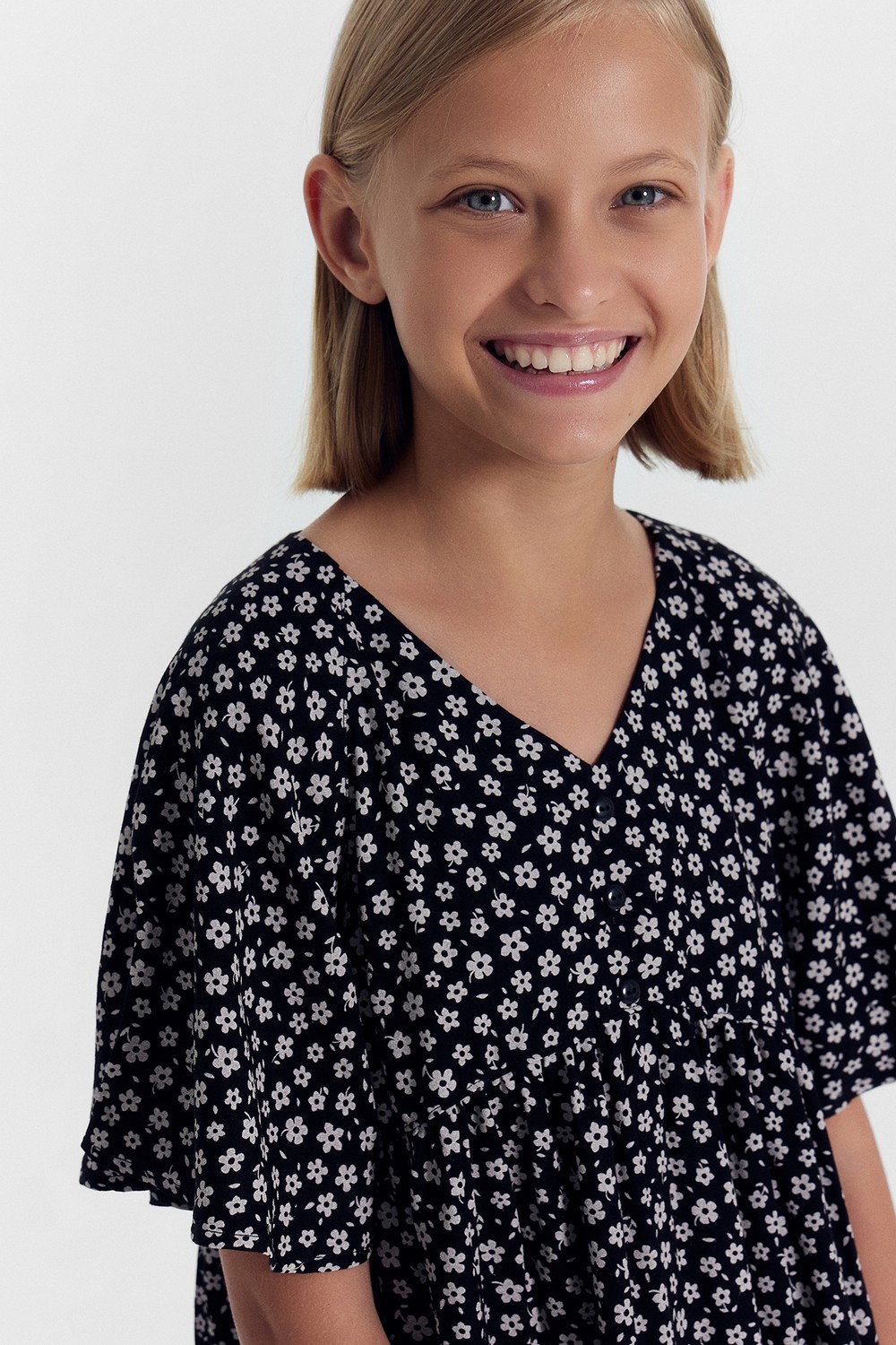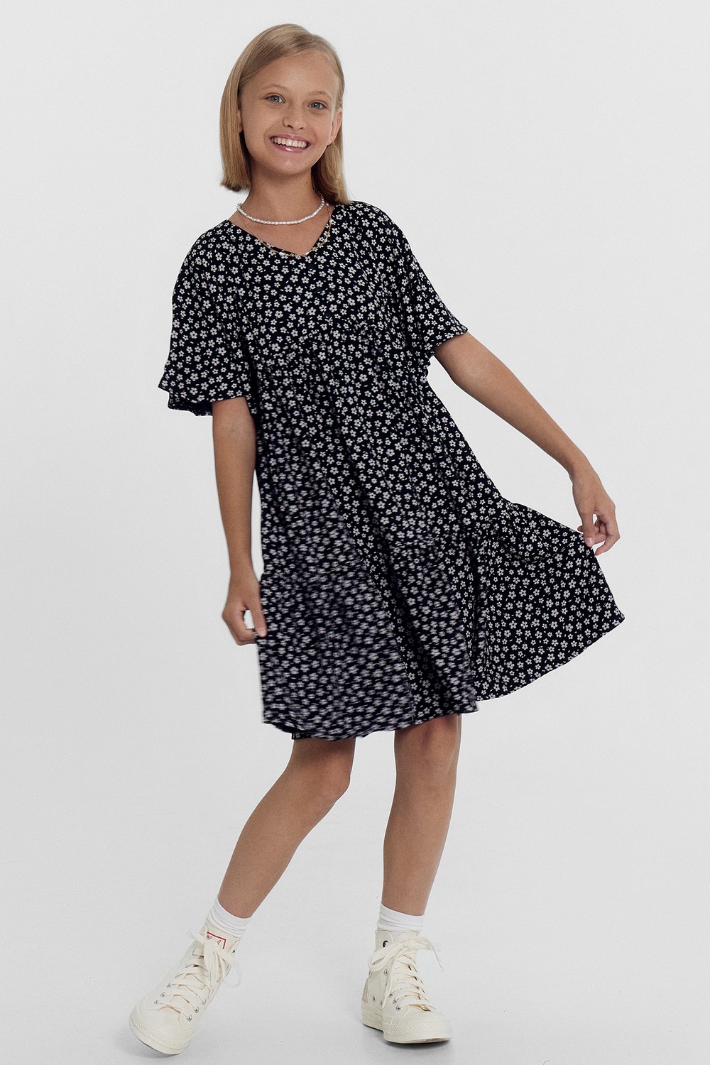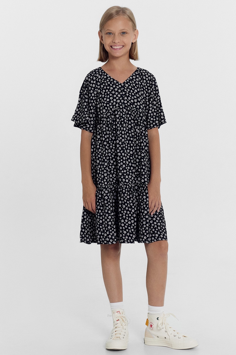 Код: 00123243 Коллекция: - Артикул: 157837 Состав полный: Вис 100% Название: Платье дев,157837,24-31086п-9-бр,24-31087п-9-бр(цветы на черном,чер,,), (30-122) Размер: 30 Рост: 122