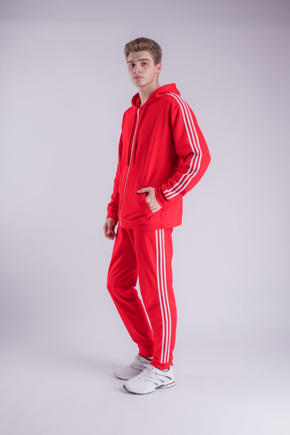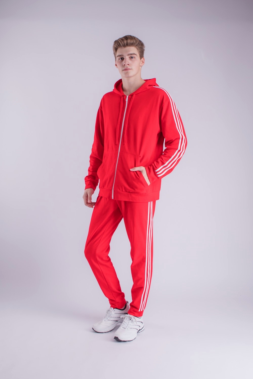 Код: 00113174 Коллекция: - Артикул: р624383 Состав полный: Хл 95%, Эл 5% Название: Костюм муж,р624383,-(красный,красн,,бел лампас), (46-170) Размер: 46 Рост: 170