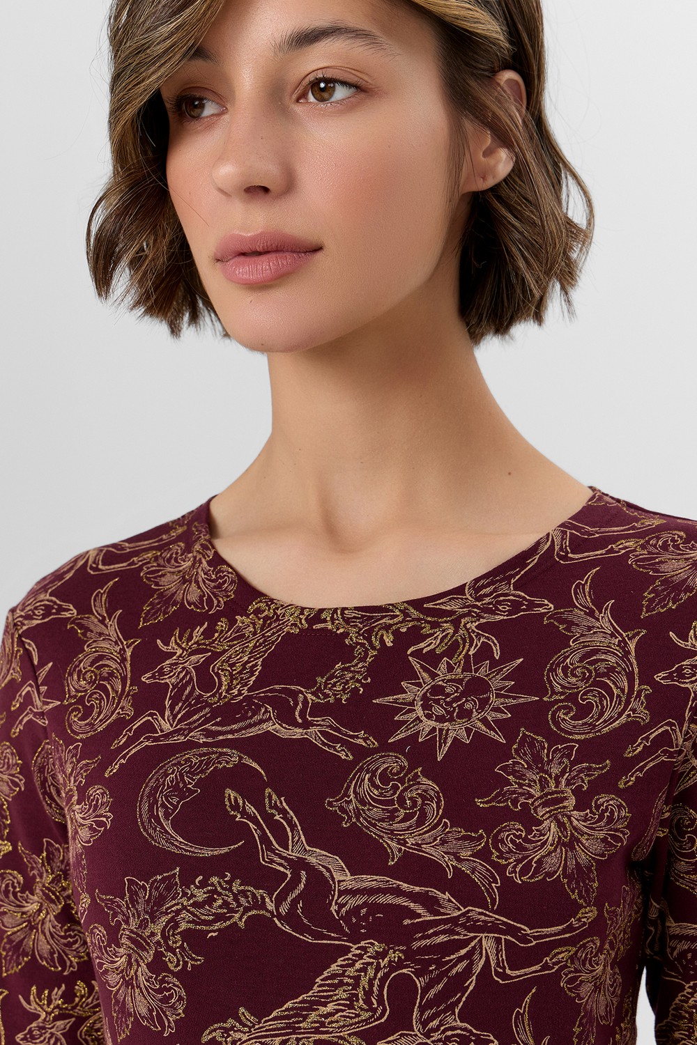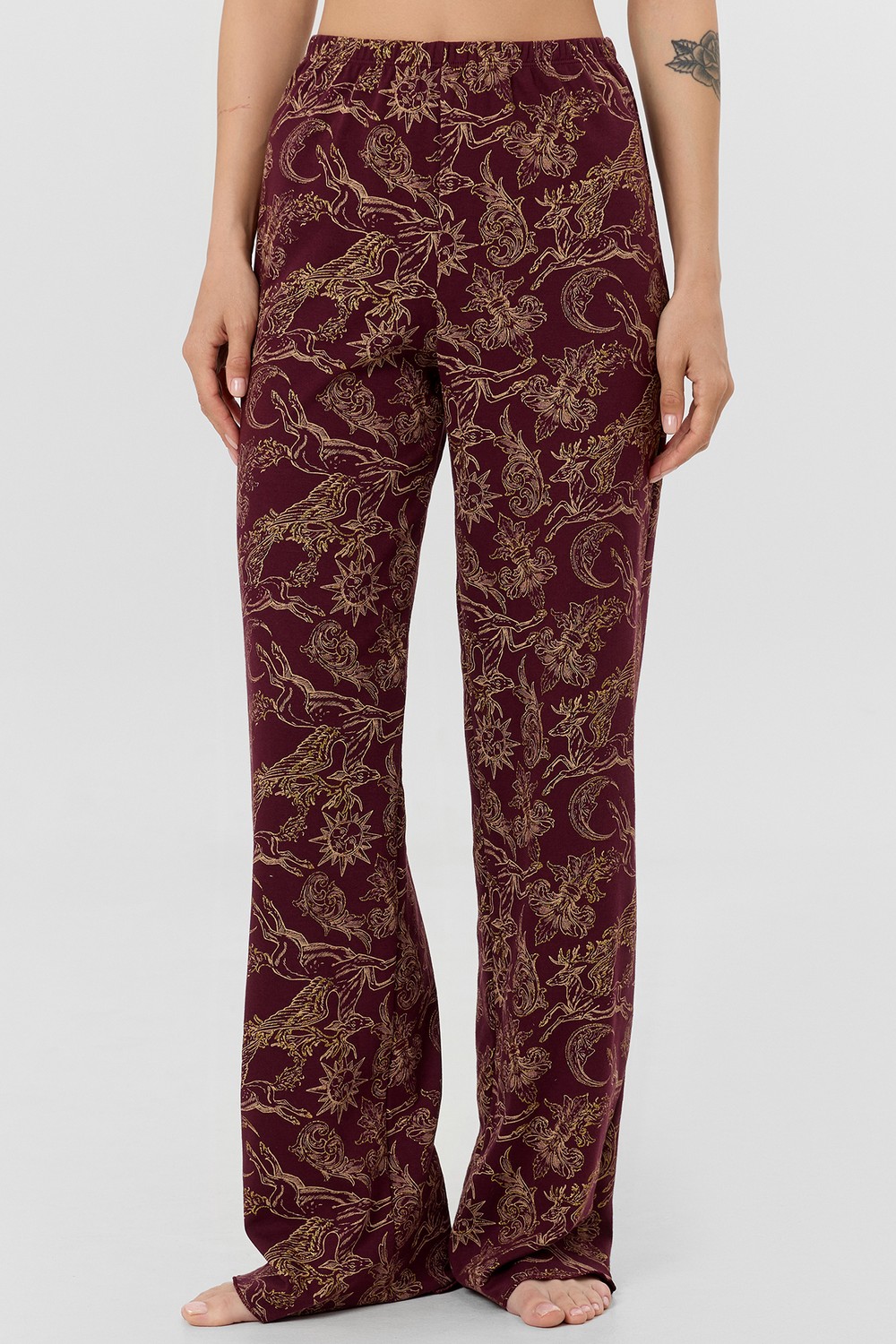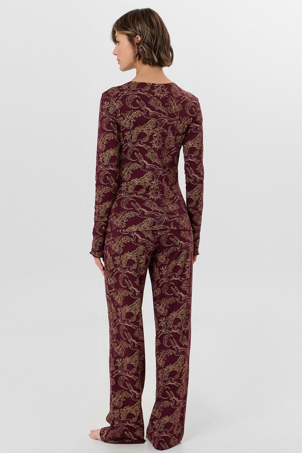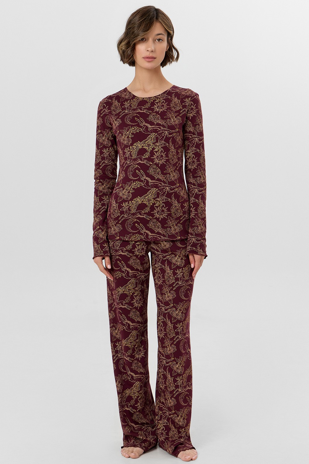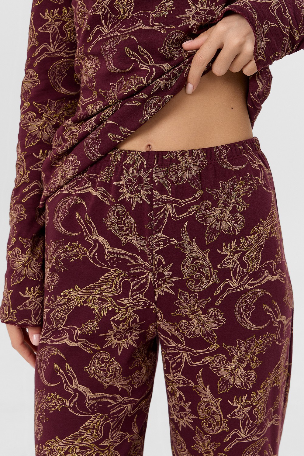 Код: 00124814 Коллекция: - Артикул: 592624 Состав полный: Хл 100% Название: Пижама жен,592624,25-35965пп-2(золотые олени на бордо,бордо,беж,), (42-164,170) Размер: 42 Рост: 164,170