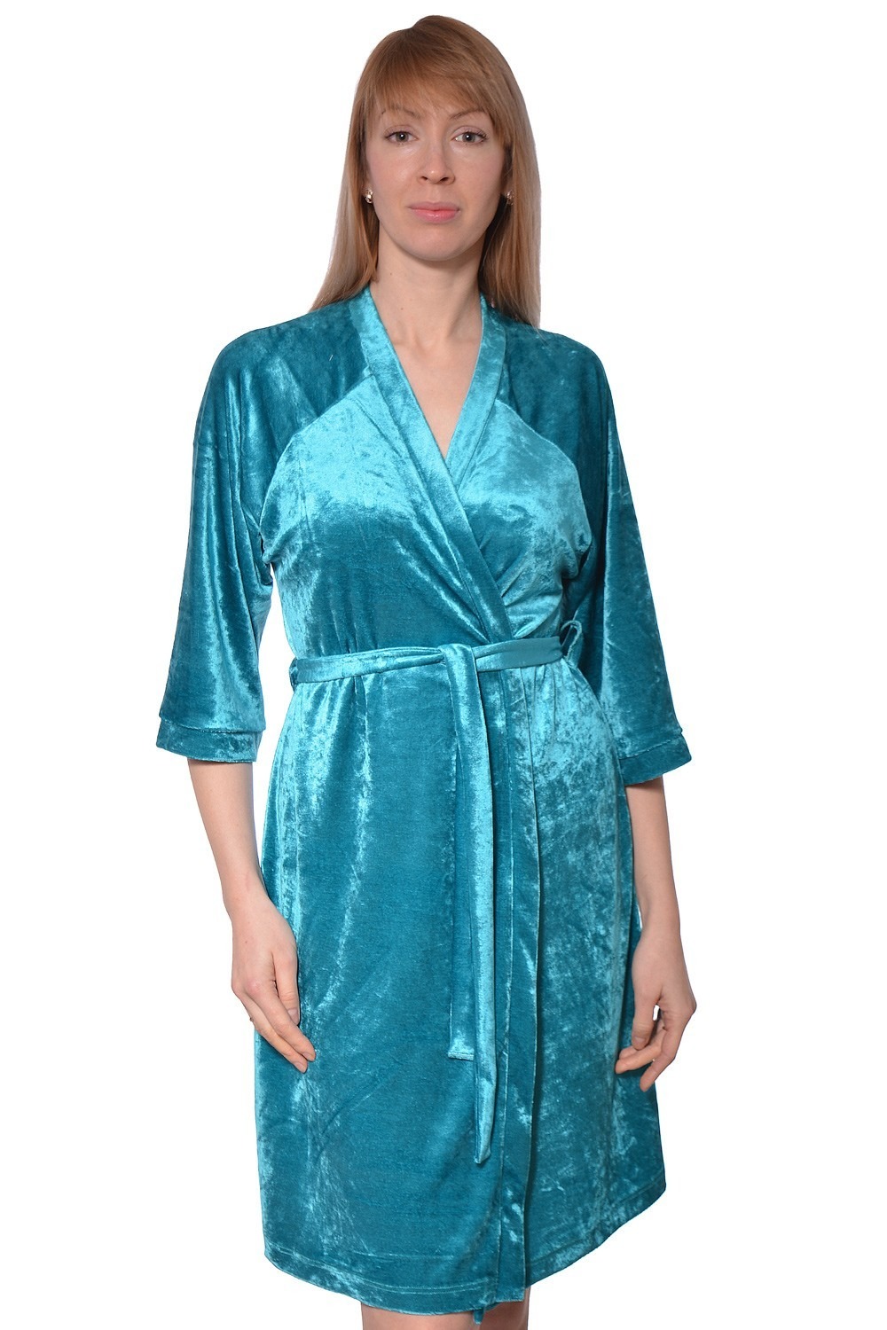 Код: 00093318 Коллекция: - Артикул: 530603 Состав полный: Вис 80%, Пэ 20% Название: Халат жен,530603,9с717(бирюза,бир,,), (44-158,164) Размер: 44 Рост: 158,164