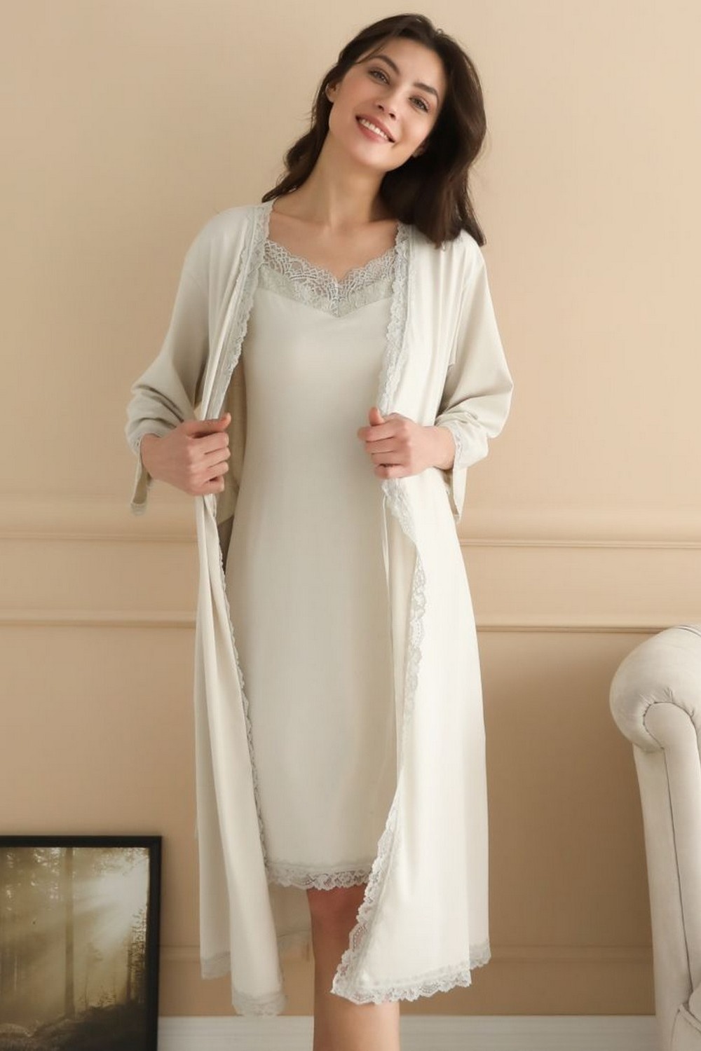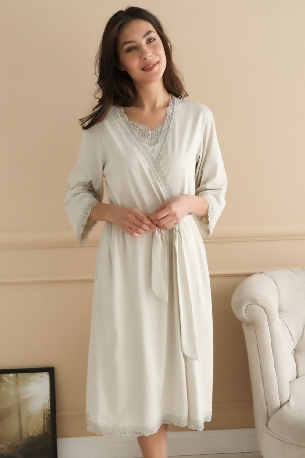 Код: 00101751 Коллекция: Cane Артикул: 75053 Состав полный: Модал 50%, Хл 50% Название: Халат жен,75053,-(светло-серый,сер-св,,), (52-170) Размер: 52 Рост: 170