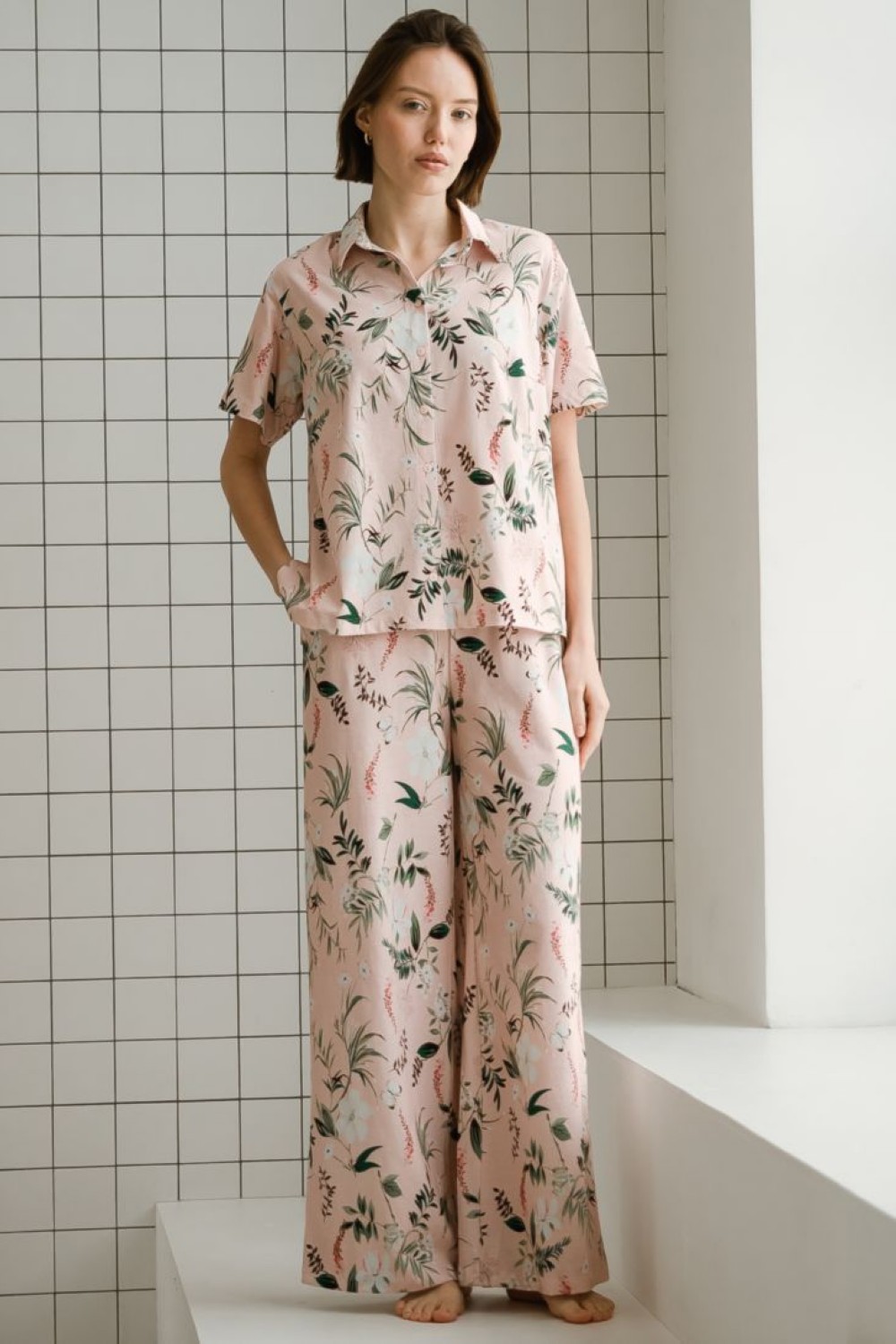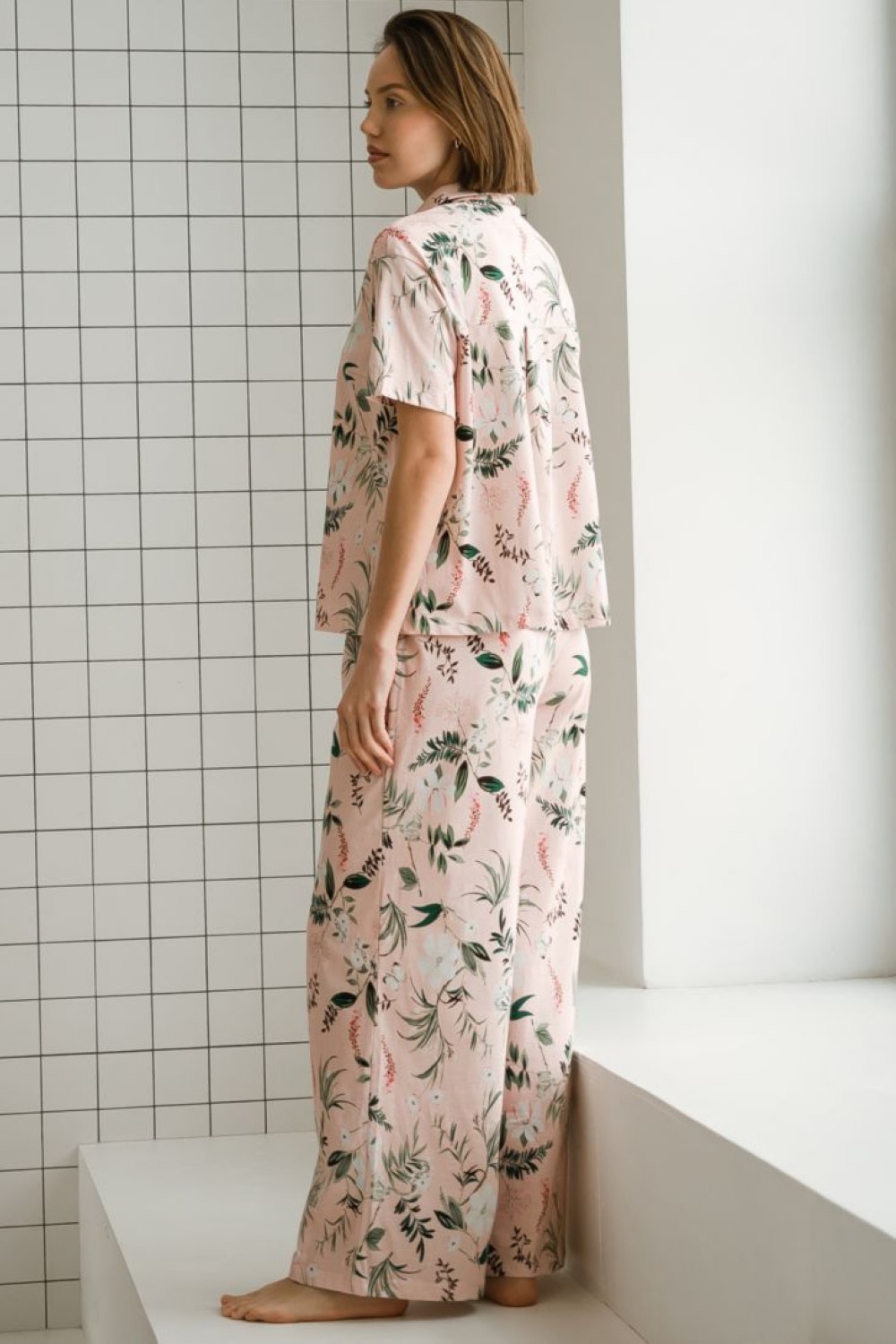 Код: 00117465 Коллекция: Camelia Артикул: 80100 Состав полный: Хл 100% Название: Пижама жен,80100,2s-052(розовый,роз-св,,цветы), (48-170) Размер: 48 Рост: 170