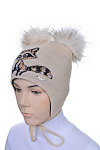 Код: 00030890 Коллекция: - Артикул: 0938-81 Состав полный: Шер 50%, Пан 50% Название: Шапка дев,0938-81,-(кремовый,беж,,стразы енот два помпона), (48) Размер: 48