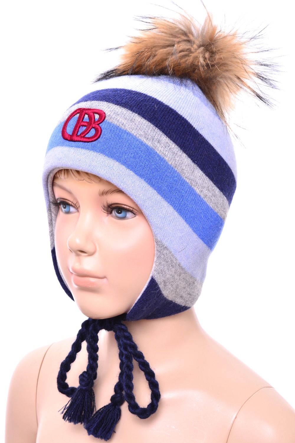 Код: 00054449 Артикул: 0663-16 Состав полный: Ангр 10%, Кашм 10%, Шер 40%, Вис 25%, Па 15% Название: Шапка мал,0663-16,-(т.синий/серый/василь,гол,,син сермел полос красн вензель), (50) Размер: 50