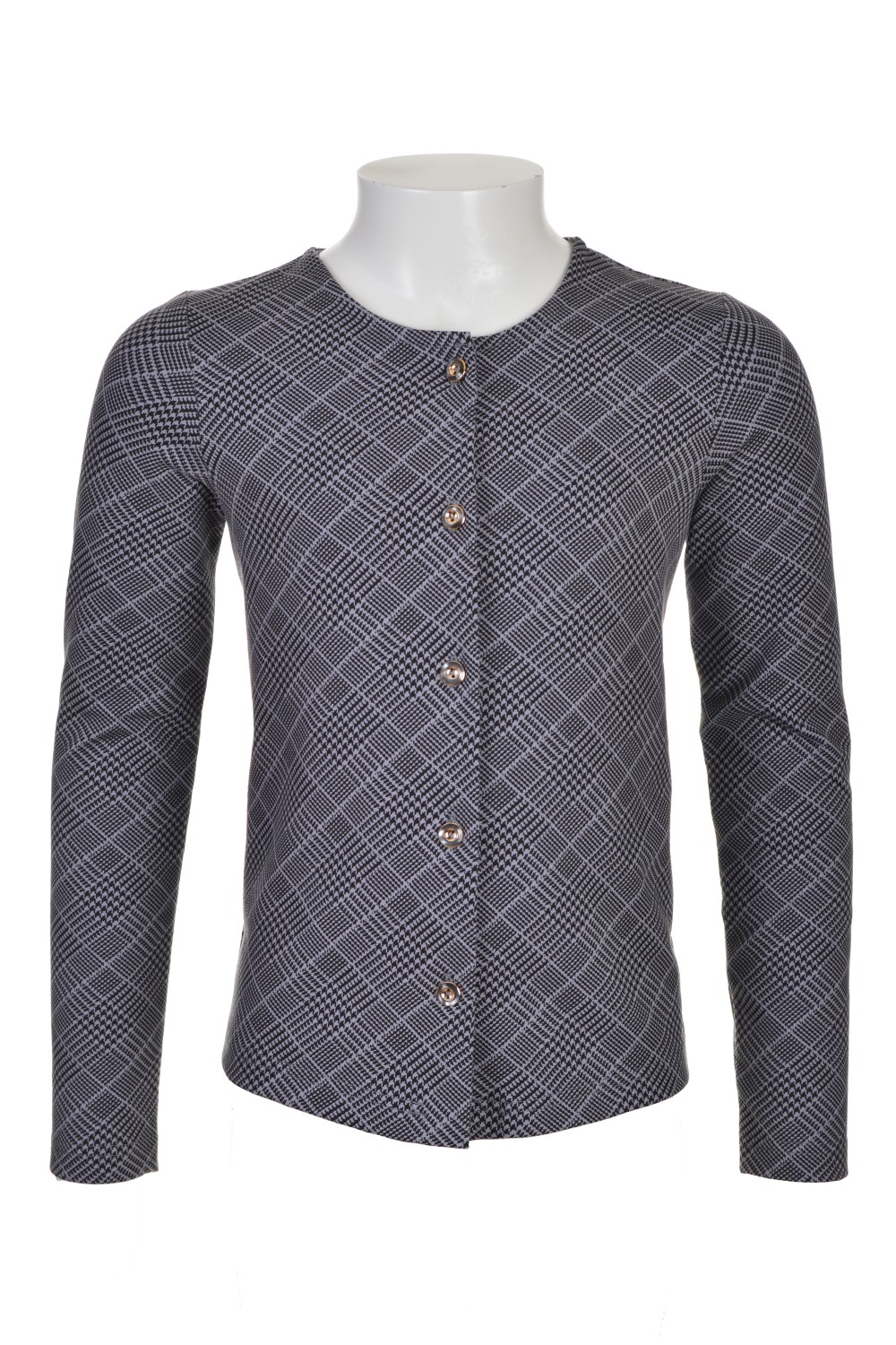Код: 00110319 Коллекция: Кембридж по серому Артикул: р822674 Состав полный: Хл 74%, Пэ 22%, Эл 4% Название: Жакет дев,р822674,-(кембридж по серому,сер,,чер гус лапки), (36-146,152) Размер: 36 Рост: 146,152