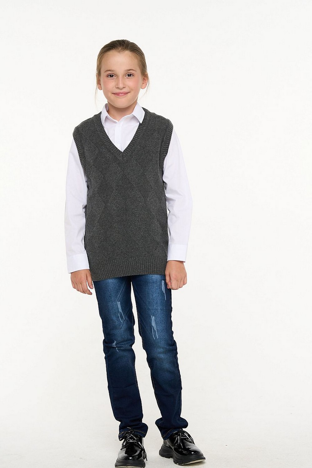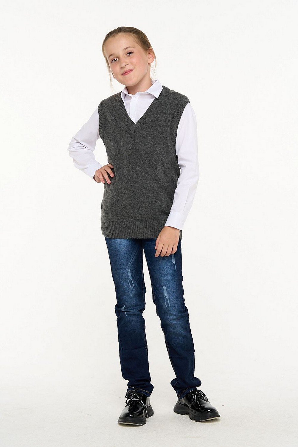 Код: 00120668 Коллекция: - Артикул: 5223-7127 Состав полный: Шер 40%, Вис 30%, Пан 30% Название: Жилет мал,5223-7127,-(серый меланж,сер-т,,), (30-122) Размер: 30 Рост: 122