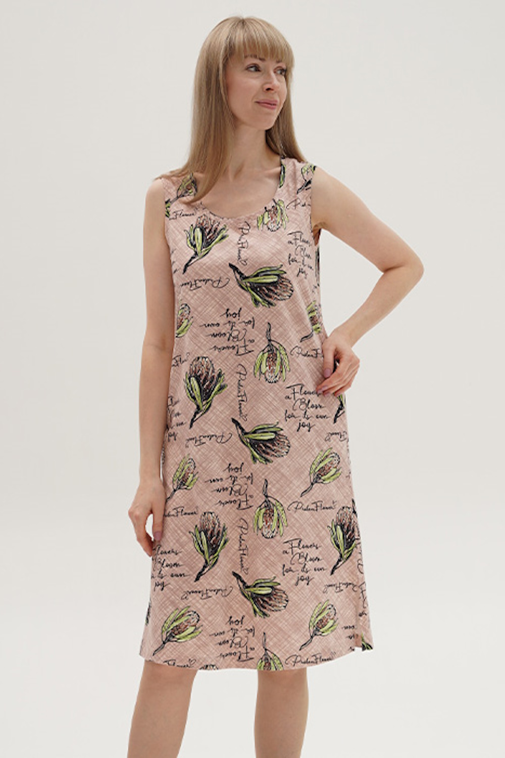 Код: 00119745 Коллекция: - Артикул: 691100 Состав полный: Хл 100% Название: Сорочка ноч жен,691100,4с3870(набивка"протея",беж,,протея), (48-158,164) Размер: 48 Рост: 158,164