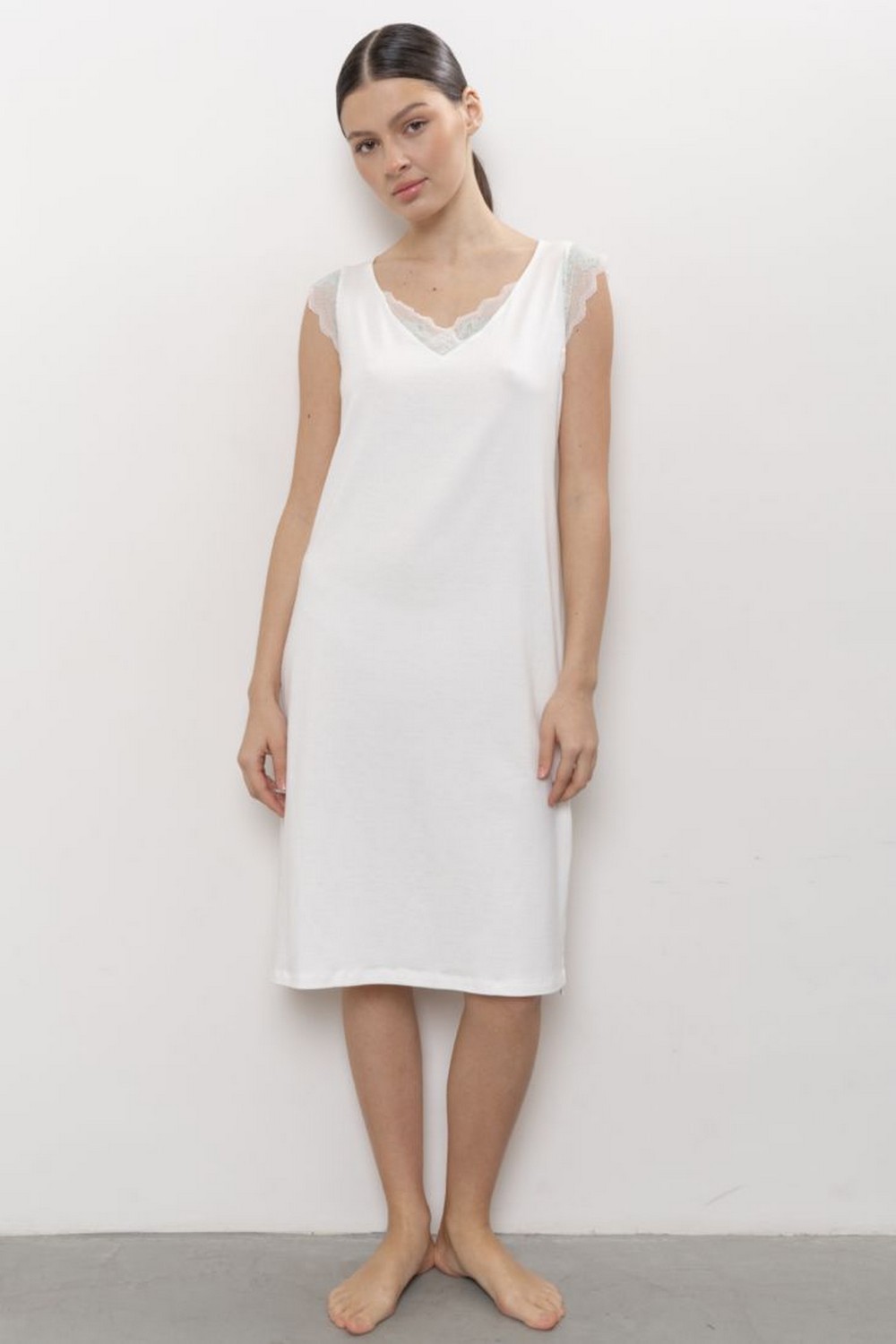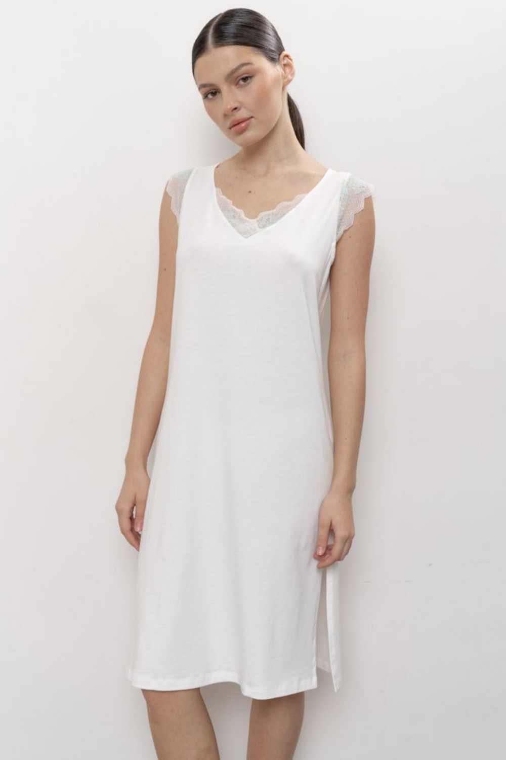 Код: 00121950 Коллекция: Aura Артикул: 60218 Состав полный: Модал 47%, Хл 47%, Эл 6% Название: Сорочка ноч жен,60218,1s-330(экрю,молоч,,), (42-170) Размер: 42 Рост: 170