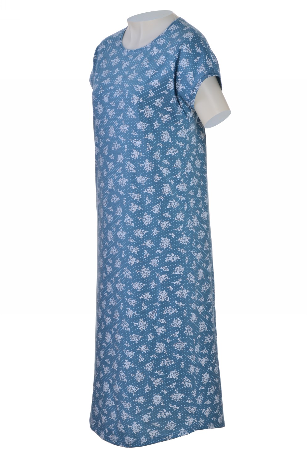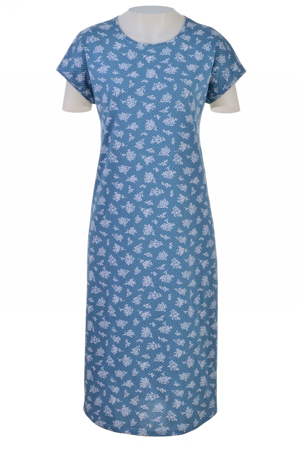 Код: 00107521 Коллекция: - Артикул: 16020 Состав полный: Хл 97%, Эл 3% Название: Сорочка ноч жен,16020,2с525(набивной,син,,цветы), (48-158,164) Размер: 48 Рост: 158,164