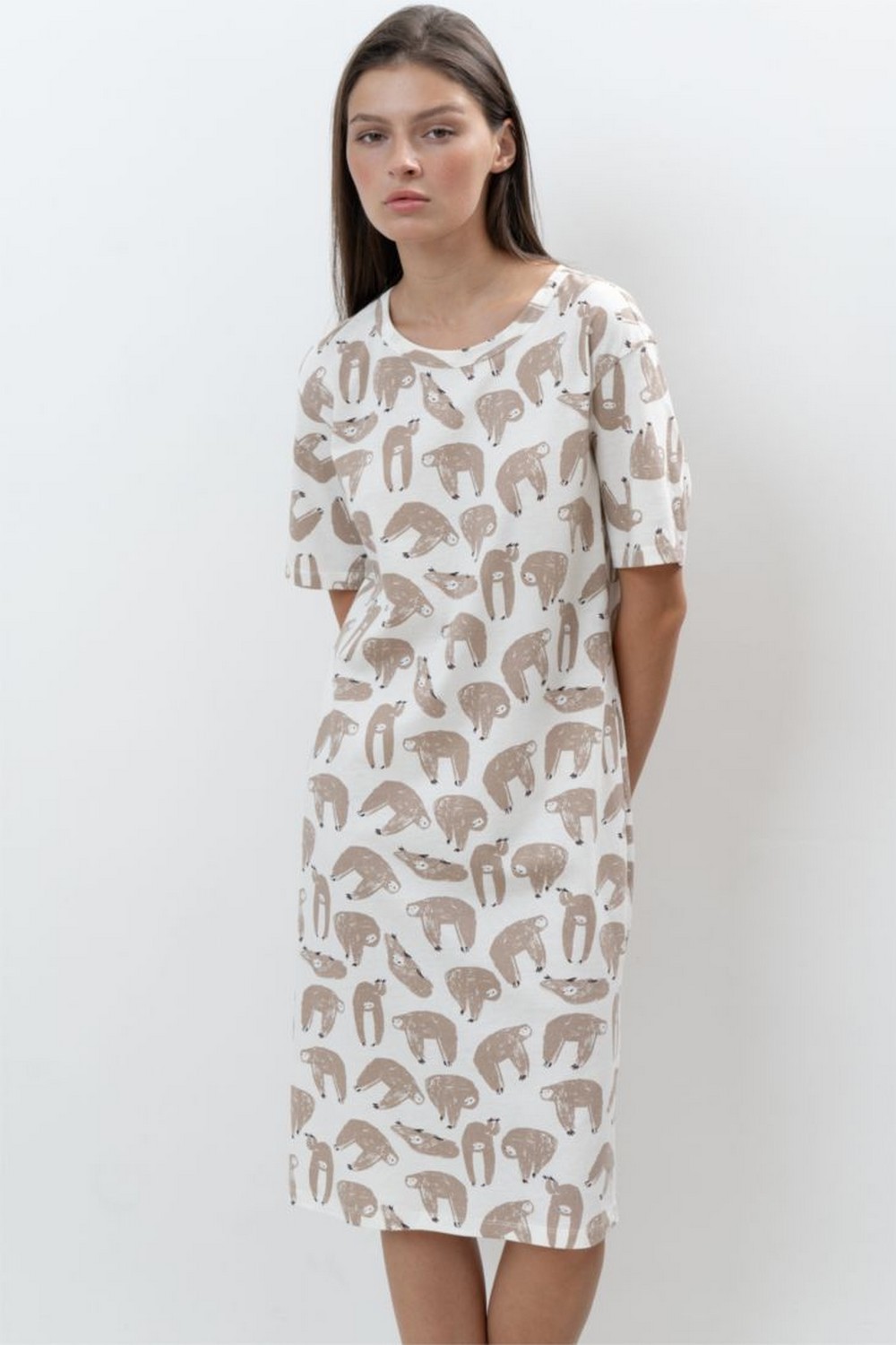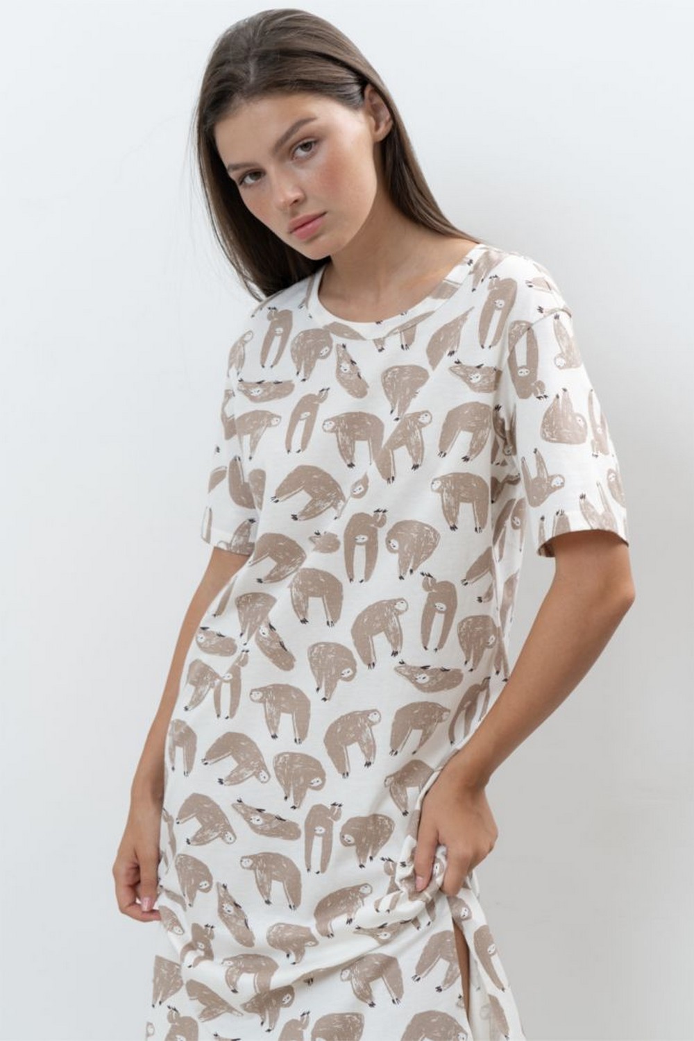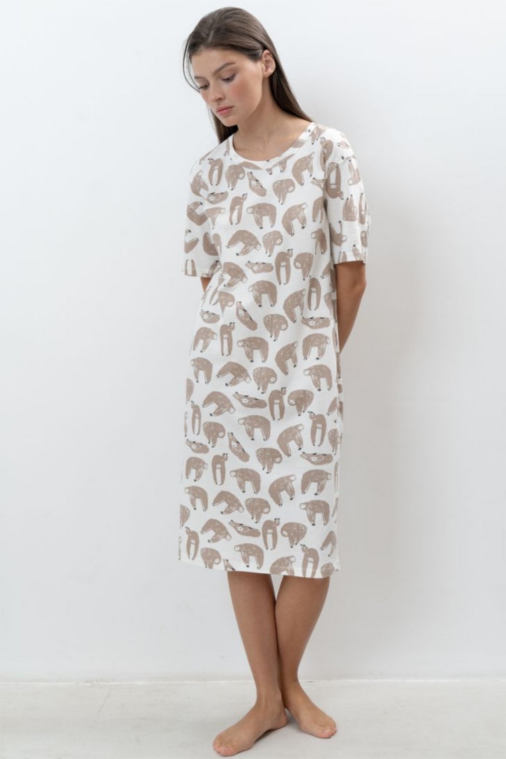 Код: 00120539 Коллекция: Sweet dream Артикул: 70126 Состав полный: Хл 100% Название: Сорочка ноч жен,70126,4h-014л(бело-бежевый,беж,,ленивец), (48-170) Размер: 48 Рост: 170