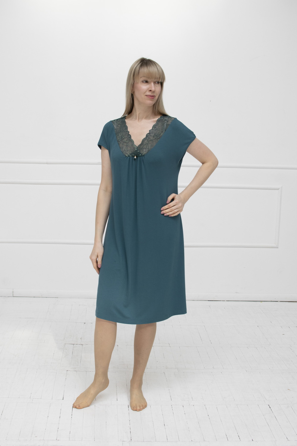 Код: 00121650 Коллекция: - Артикул: 616221 Состав полный: Вис 95%, Эл 5% Название: Сорочка ноч жен,616221,4с3572(темно-зеленый,зел-т,,), (48-158,164) Размер: 48 Рост: 158,164