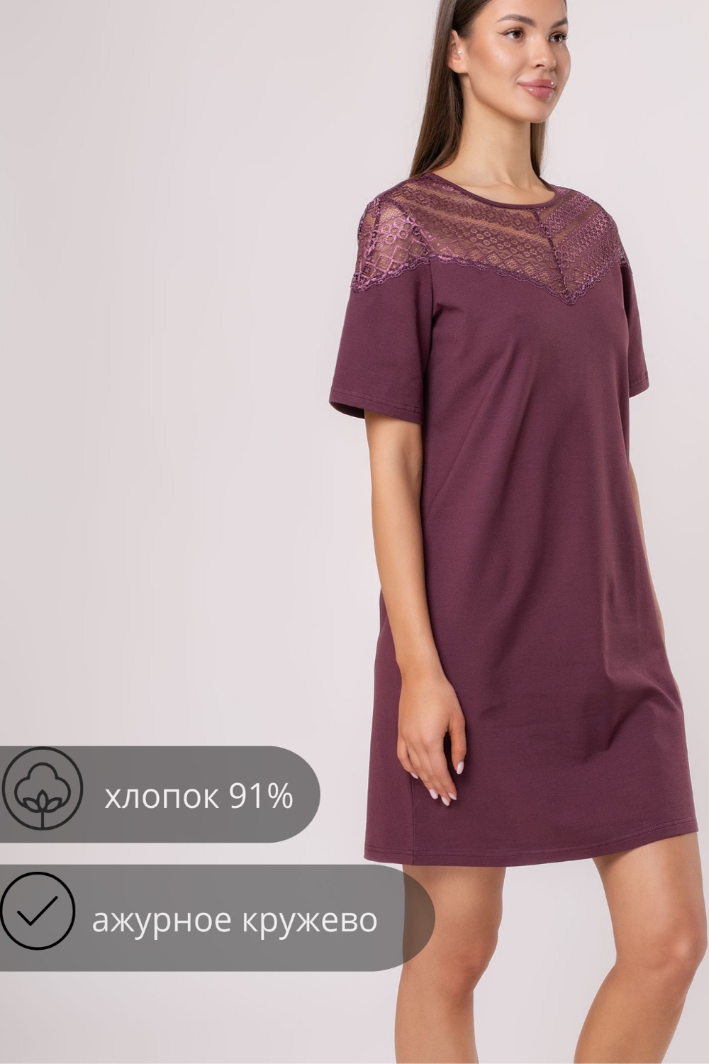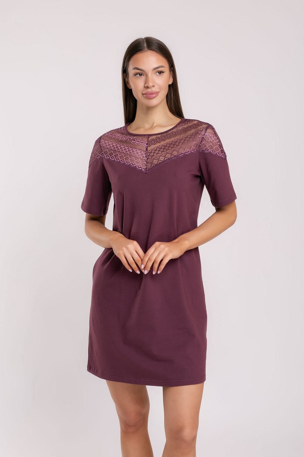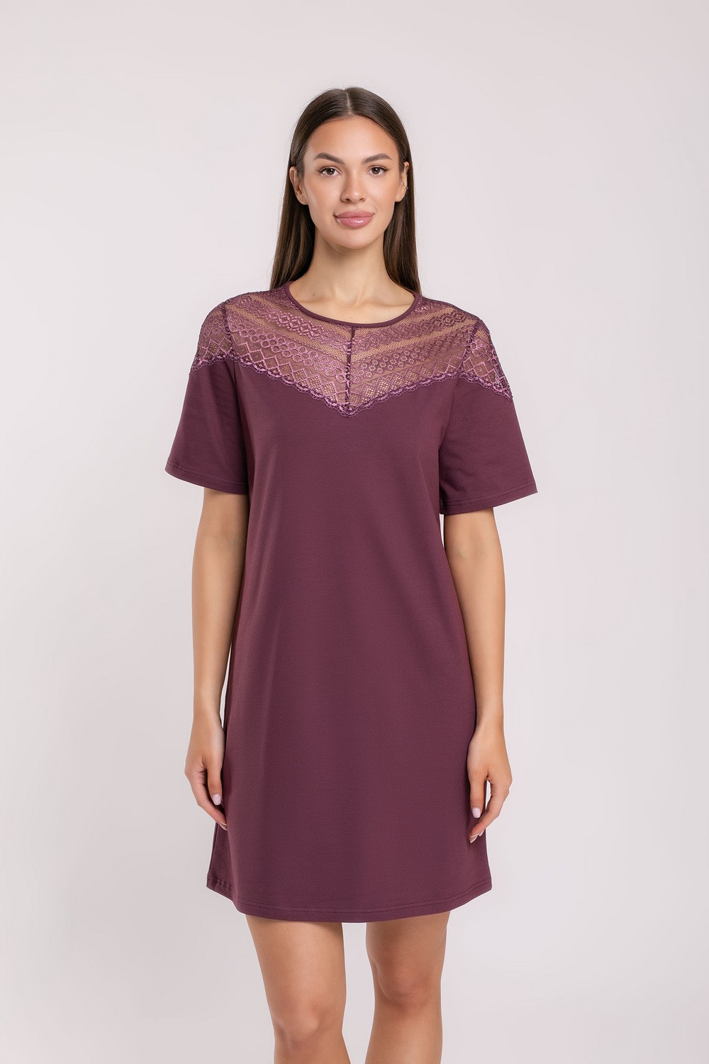 Код: 00123239 Коллекция: Сливовое вино 3573-R1111 сливовое вино Артикул: s8149 Состав полный: Хл 91%, Па 4%, Эл 5% Название: Сорочка ноч жен,s8149,s8149/19(сливовое вино,бордо,,), (46-170) Размер: 46 Рост: 170